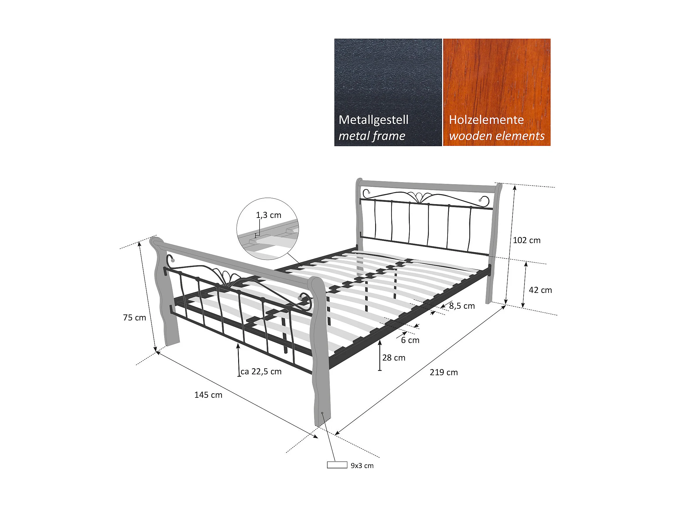 Lit 140x200 cm noir marron 1008