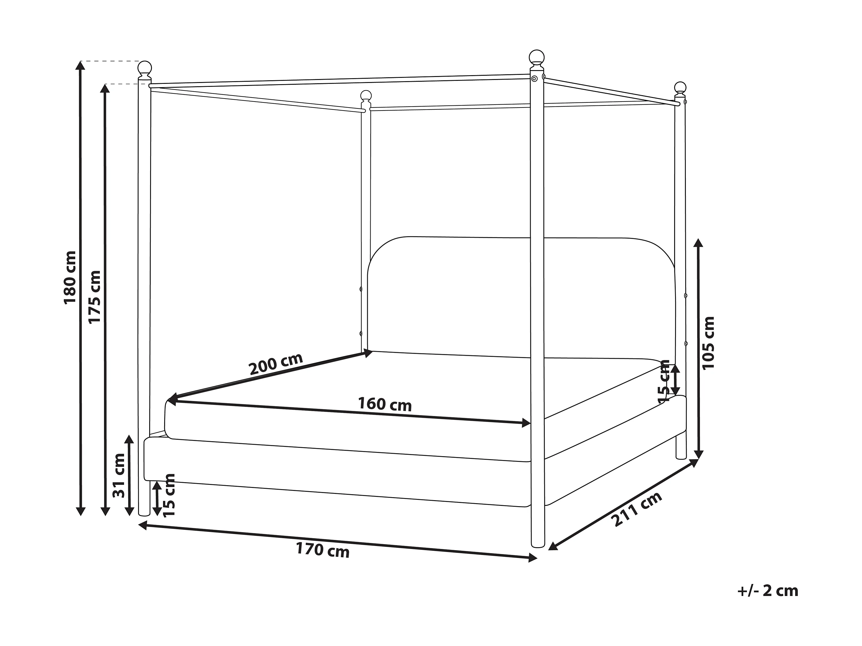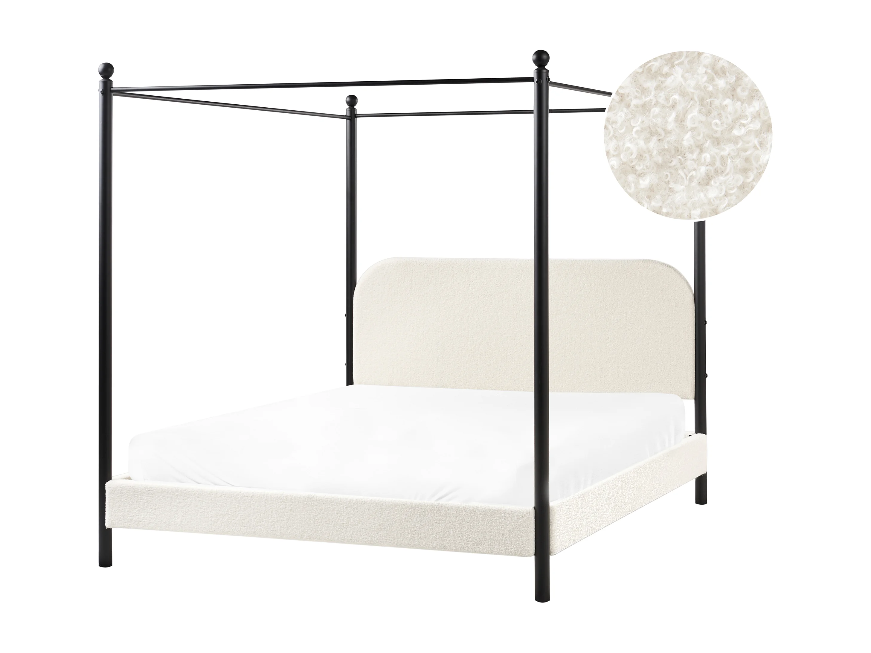 Lit à baldaquin Bouclé DANNEMOIS 160 x 200 cm Blanc cassé