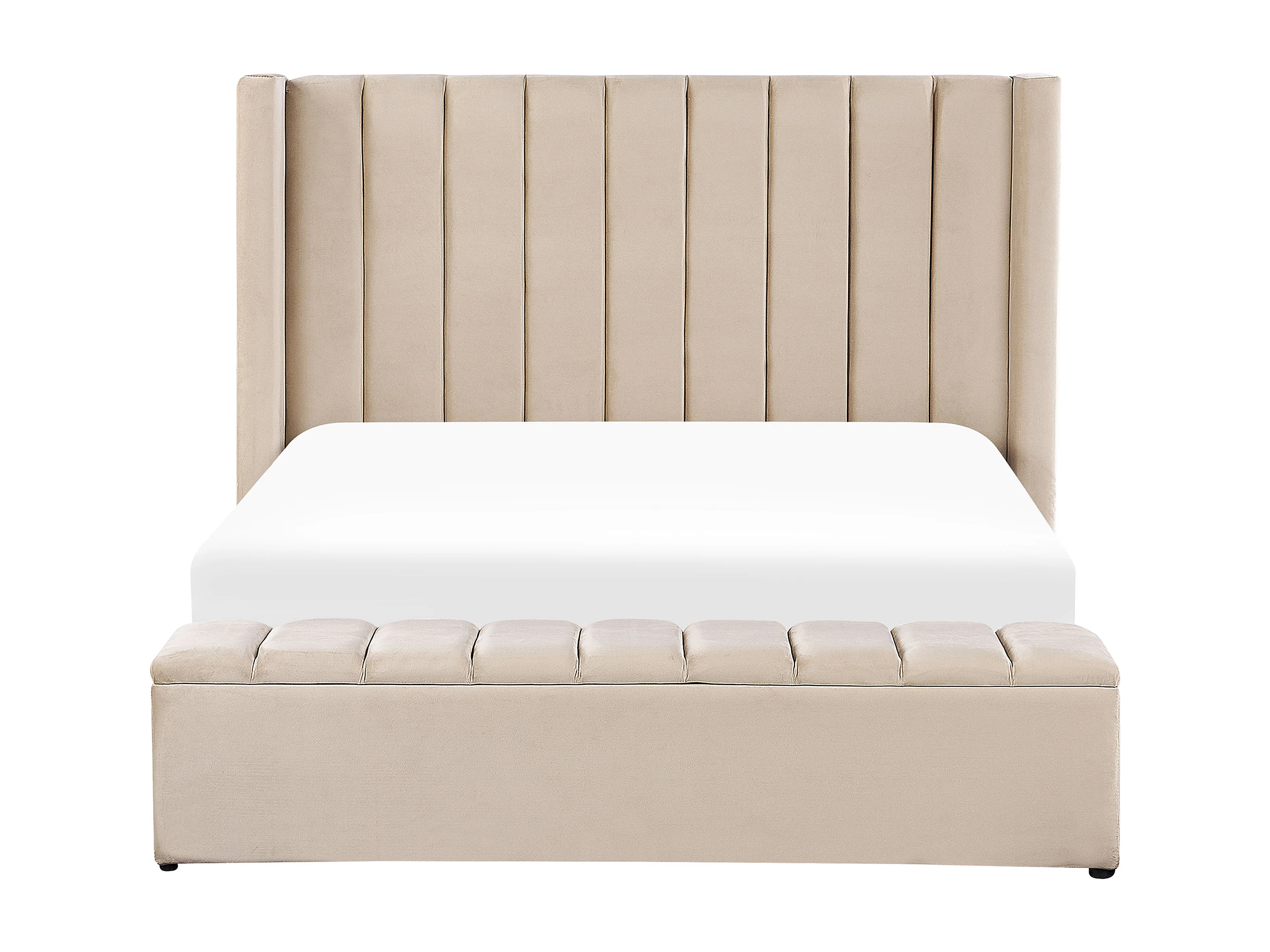 Lit à eau avec banquette de rangement Velours NOYERS 160 x 200 cm Beige