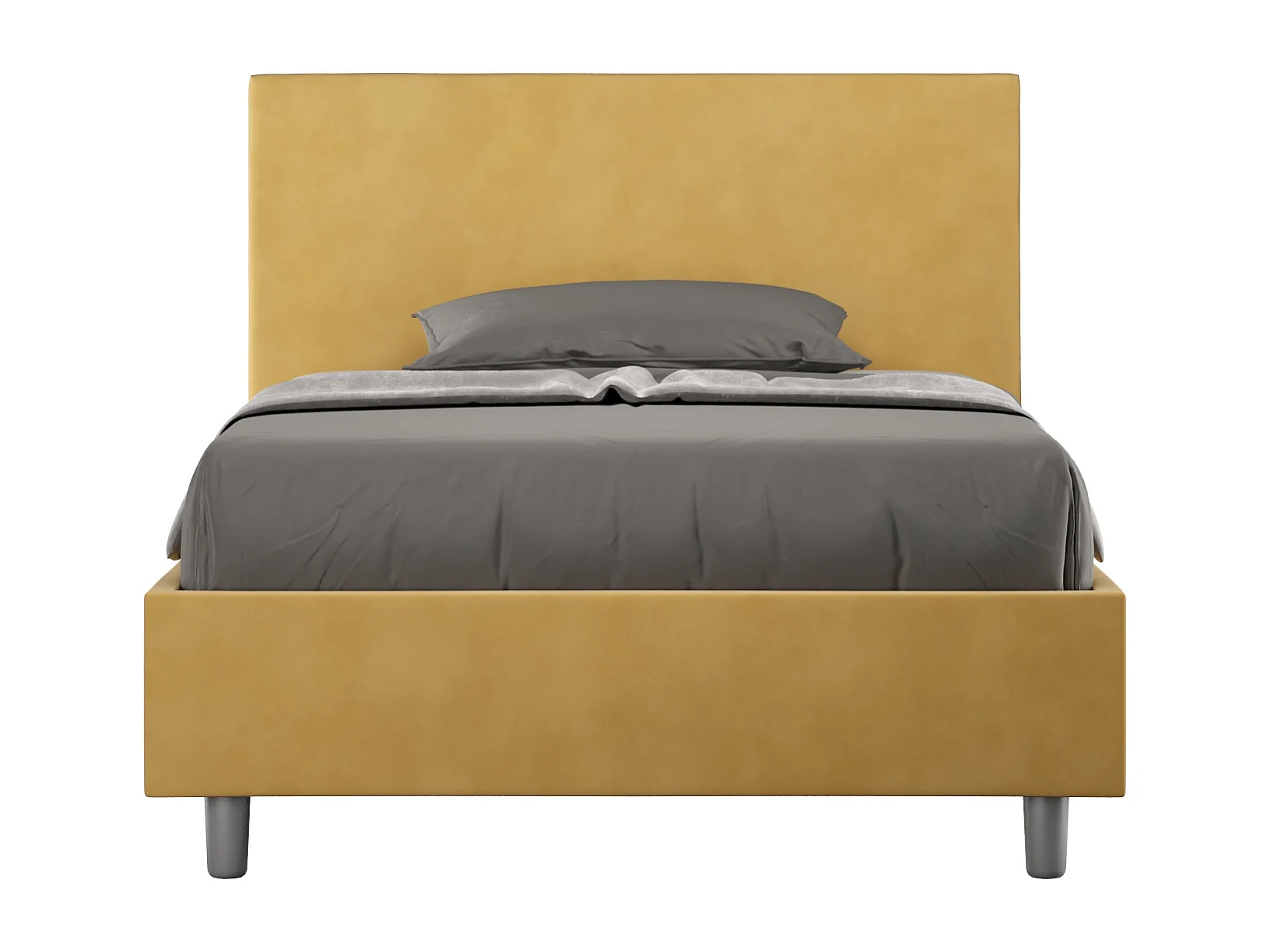 Lit 1 place et demi avec sommier rembourré 120x210 microfibre ocre Adele