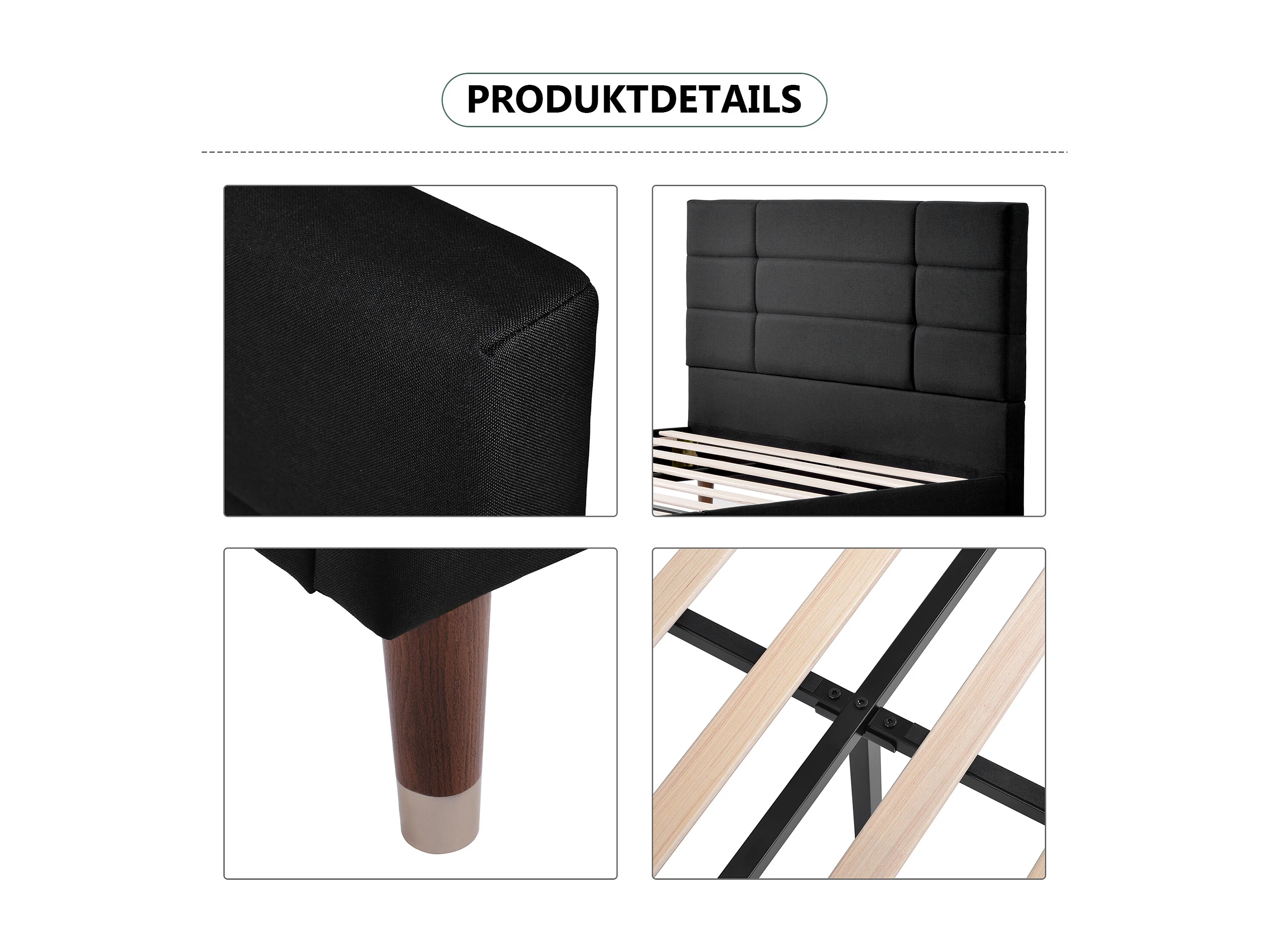 Lit adulte 140x200 cm avec Matelas - Lit enfant en tissu lin noir