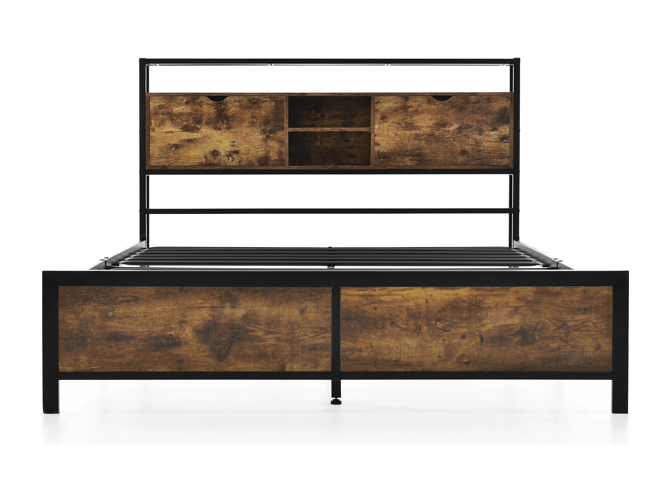 Lit adulte 140x200 cm avec sommier métallique - tête de lit rangement - cadre de lit en métal - marron (sans matelas)