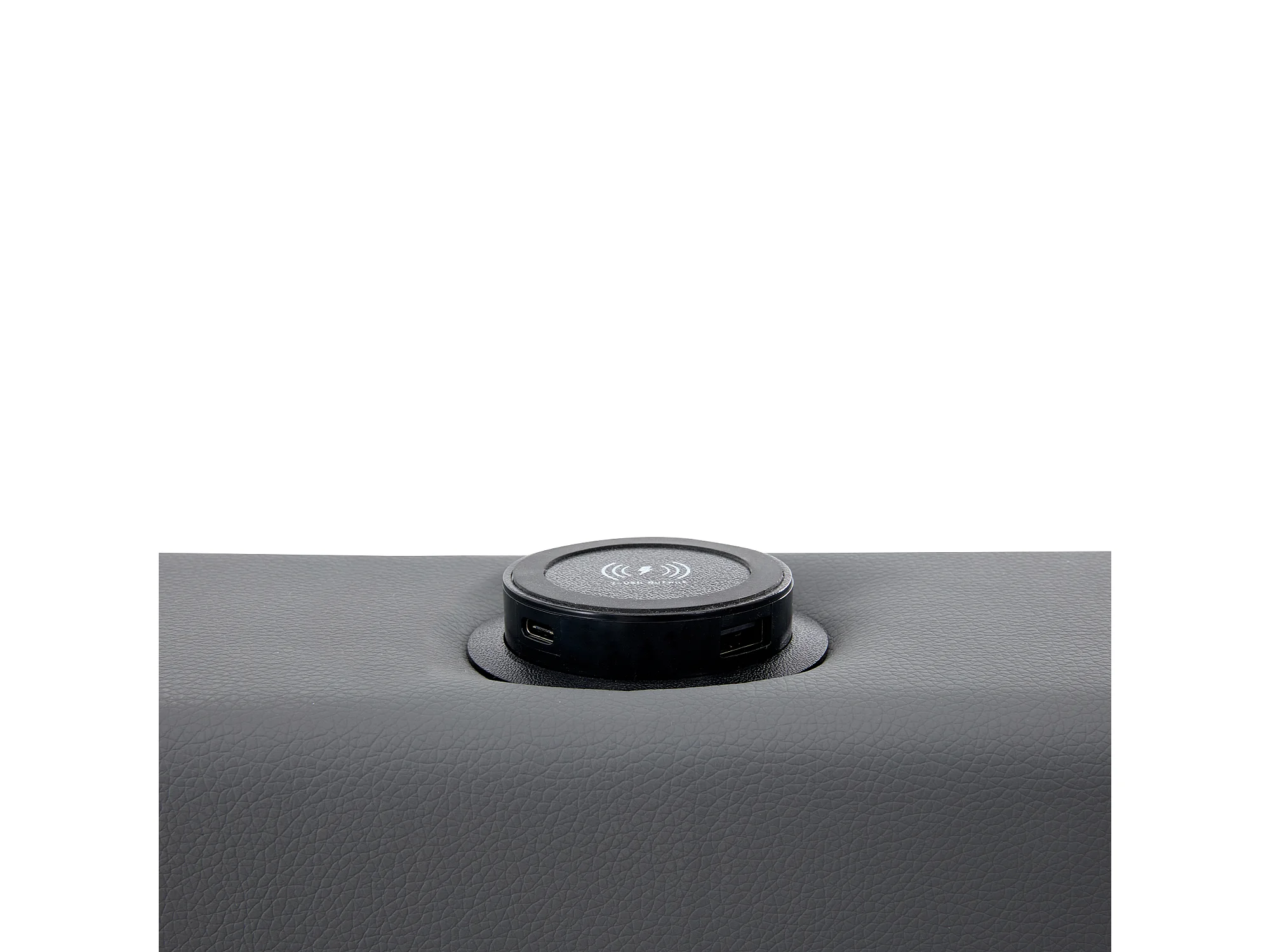 Lit adulte 140x200 cm avec sommier - tête de lit capitonnée avec USB LED et 4 tiroirs - similicuir - gris (sans matelas)