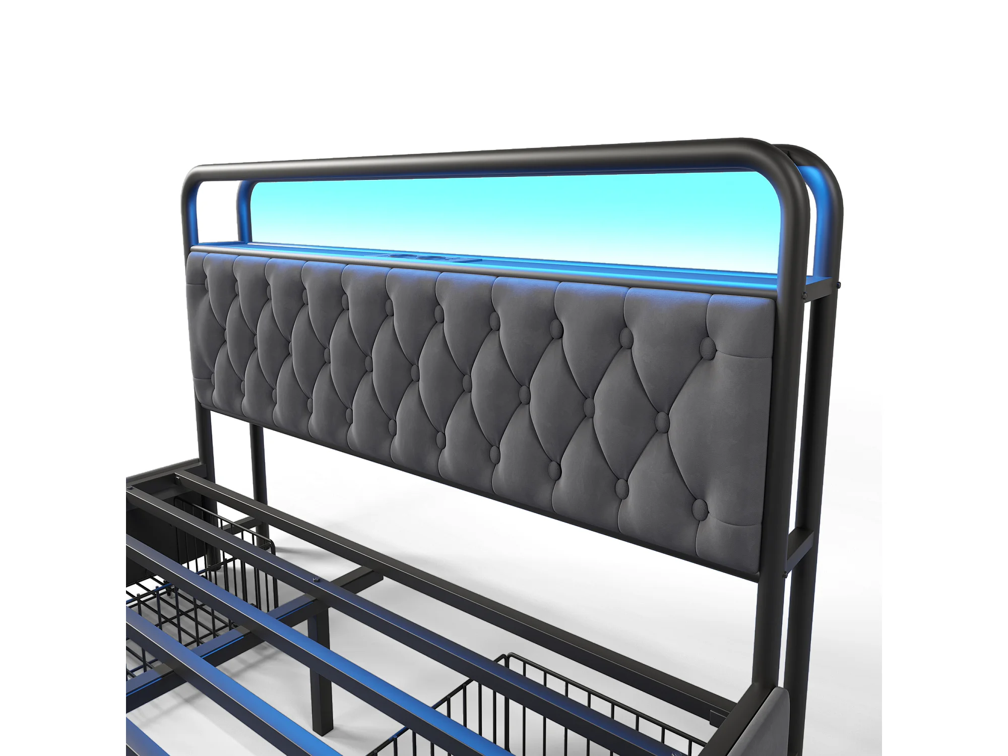 Lit adulte 160x200 cm avec sommier et 2 tiroirs - cadre de lit en métal avec USB et LED - velours - gris (sans matelas)