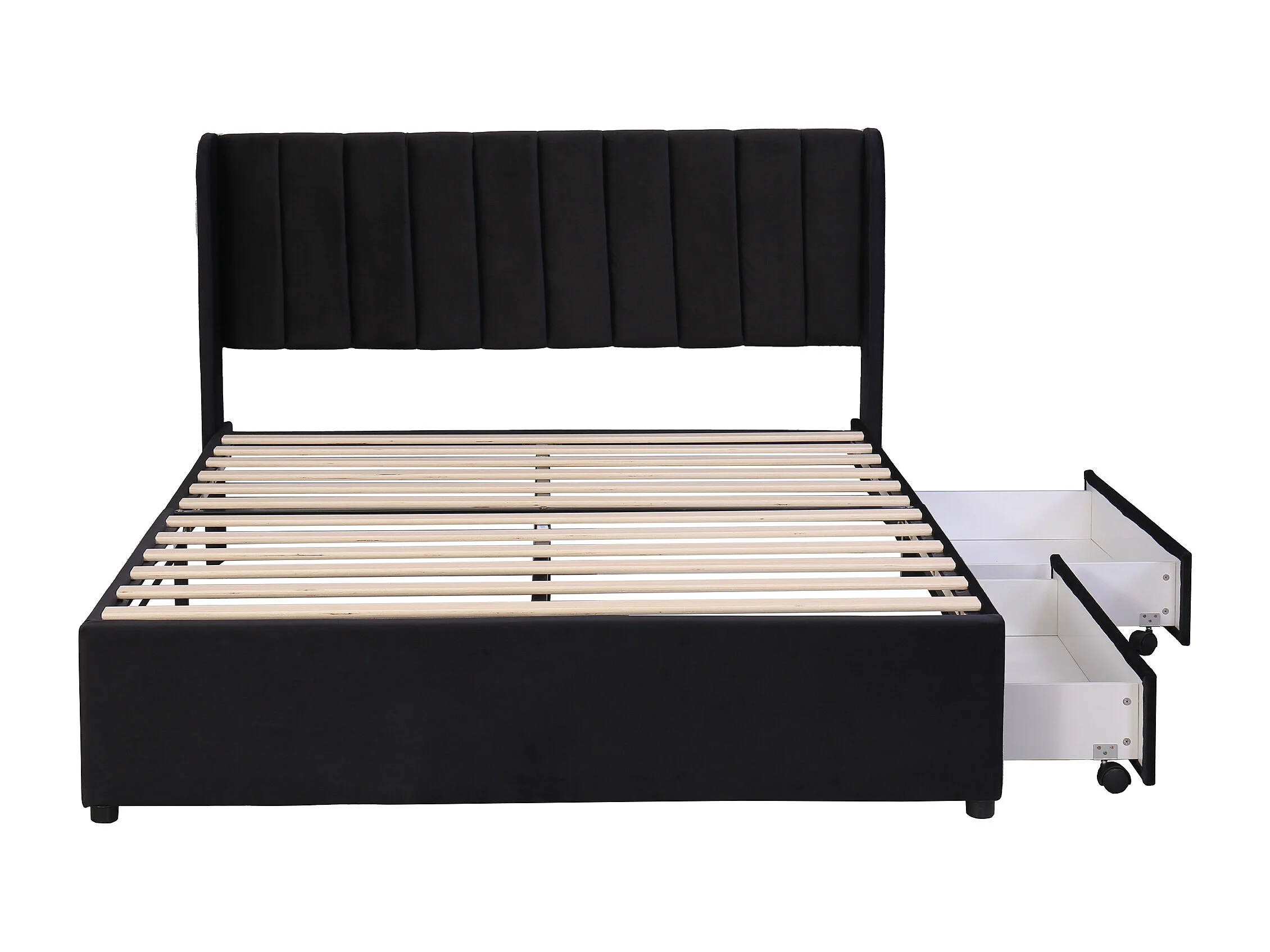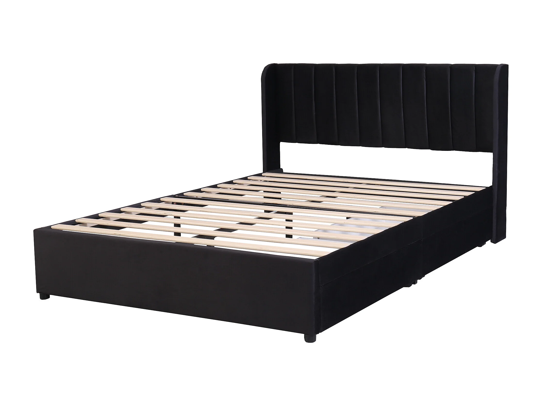 Lit adulte 160x200 cm avec sommier et 2 tiroirs de rangement - tête de lit capitonnée - velours - noir (sans matelas)
