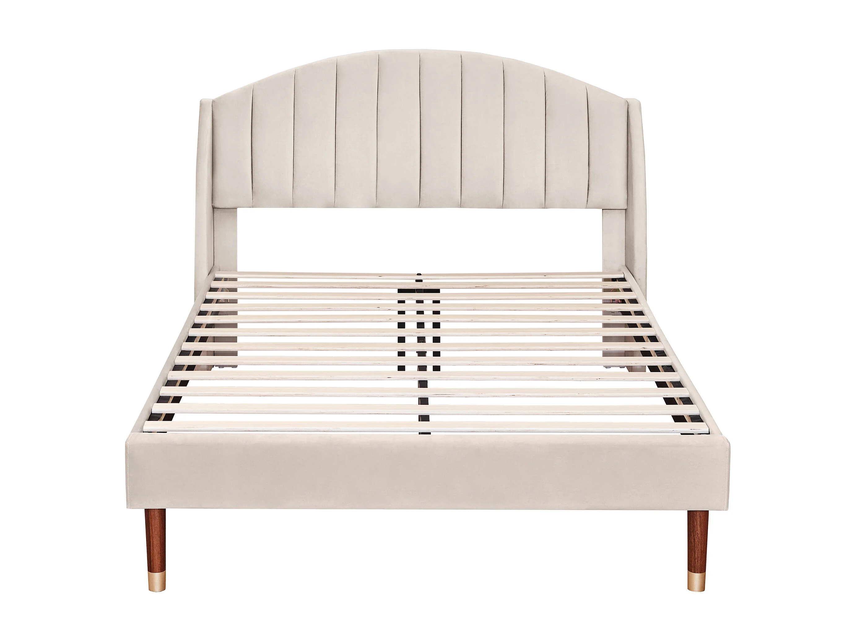 Lit adulte 140x200 cm avec sommier - tête de lit réglable en hauteur et pieds en métal - bois - velours beige (sans matelas)