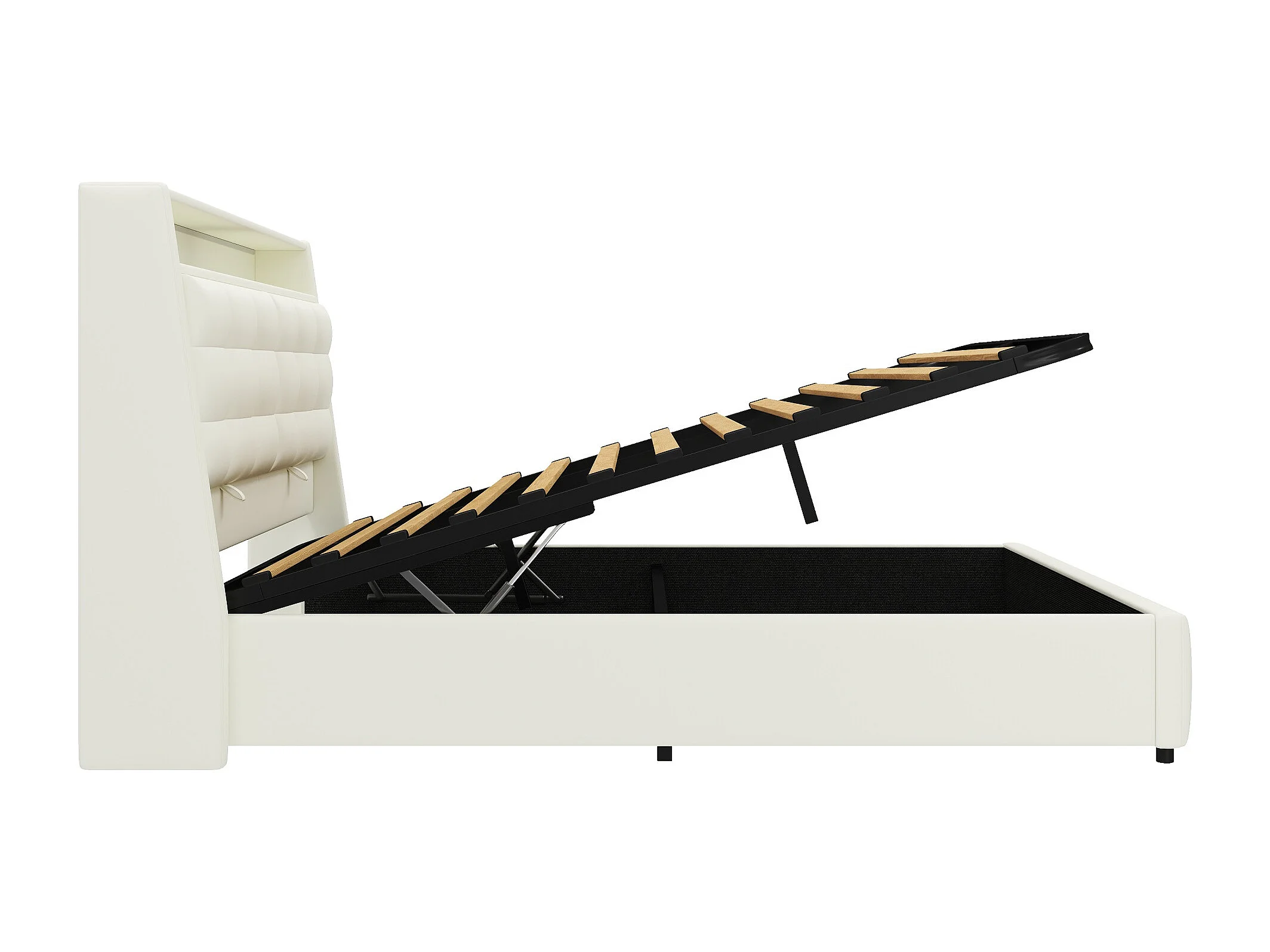 Lit double 160x200cm Style contemporain Confort appui coussin réglable 12 lattes Capacité 220kg MDF PU Blanc (Sans matelas)