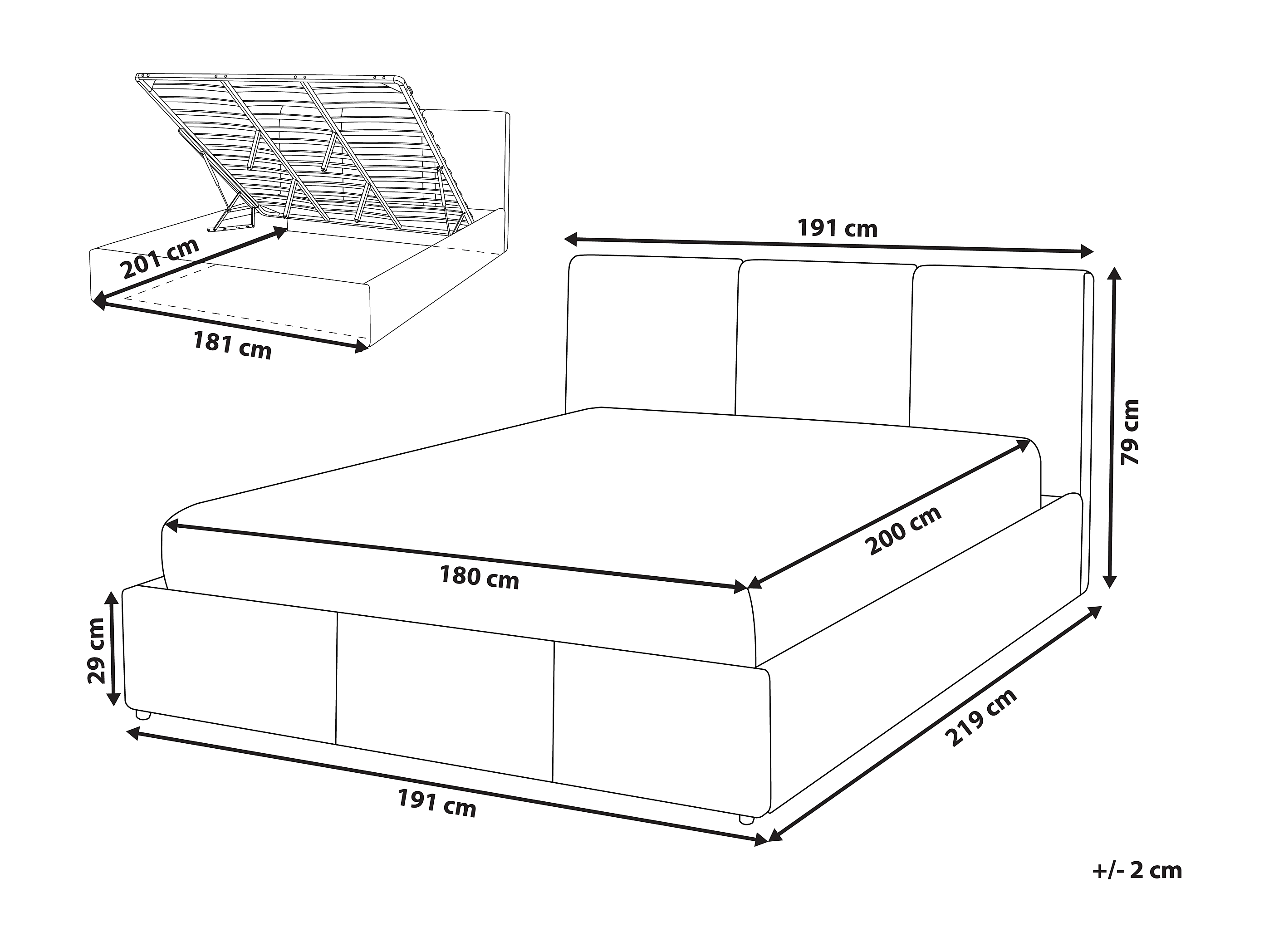 Lit ottoman Velours BOUSSE 180 x 200 cm Gris clair
