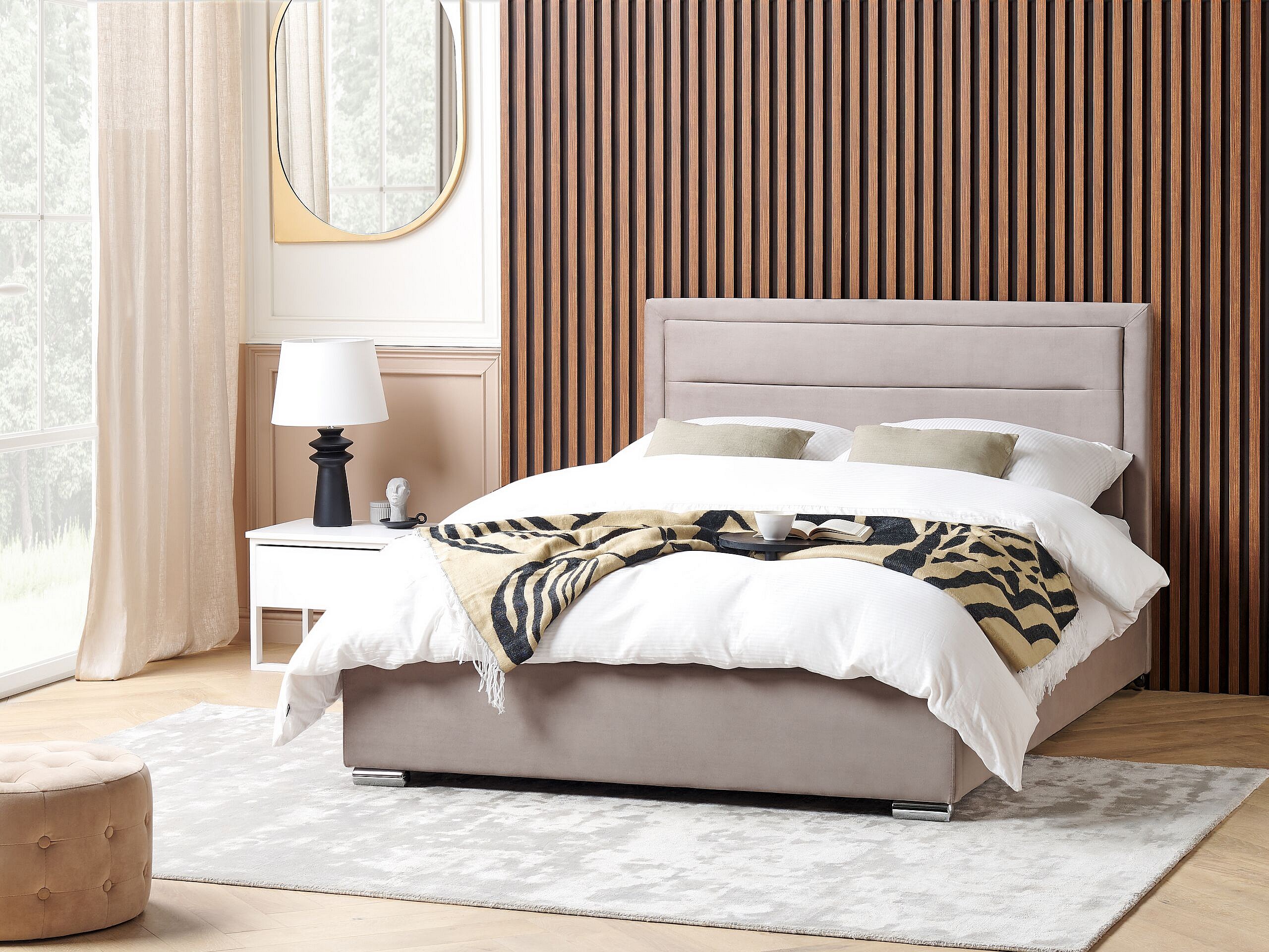 Lit ottoman Velours ROUEN 160 x 200 cm Taupe