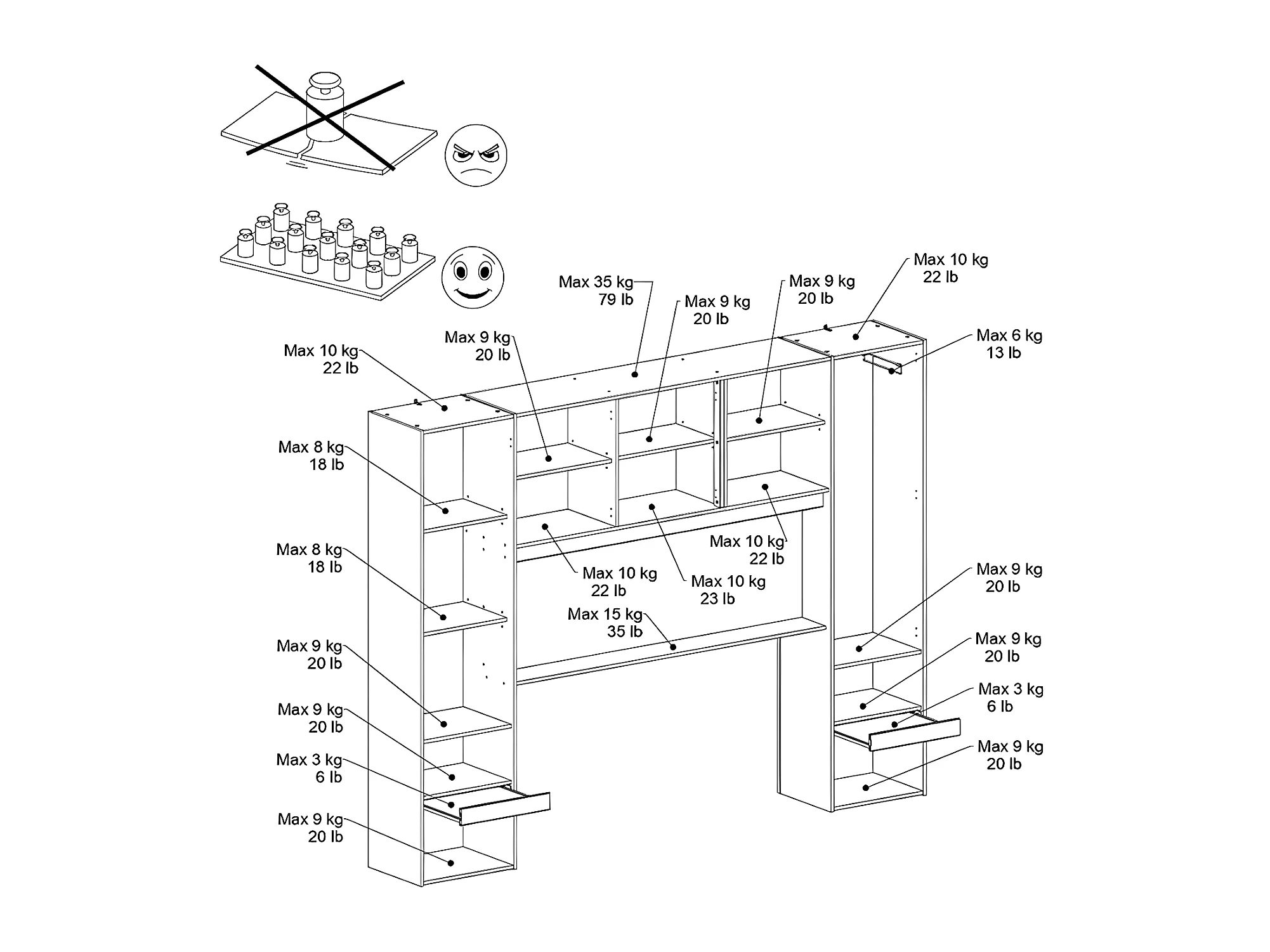 Lit pont 160 x 200 cm avec rangements - avec LEDs - Coloris : Naturel et blanc brillant + Sommier - VELONA