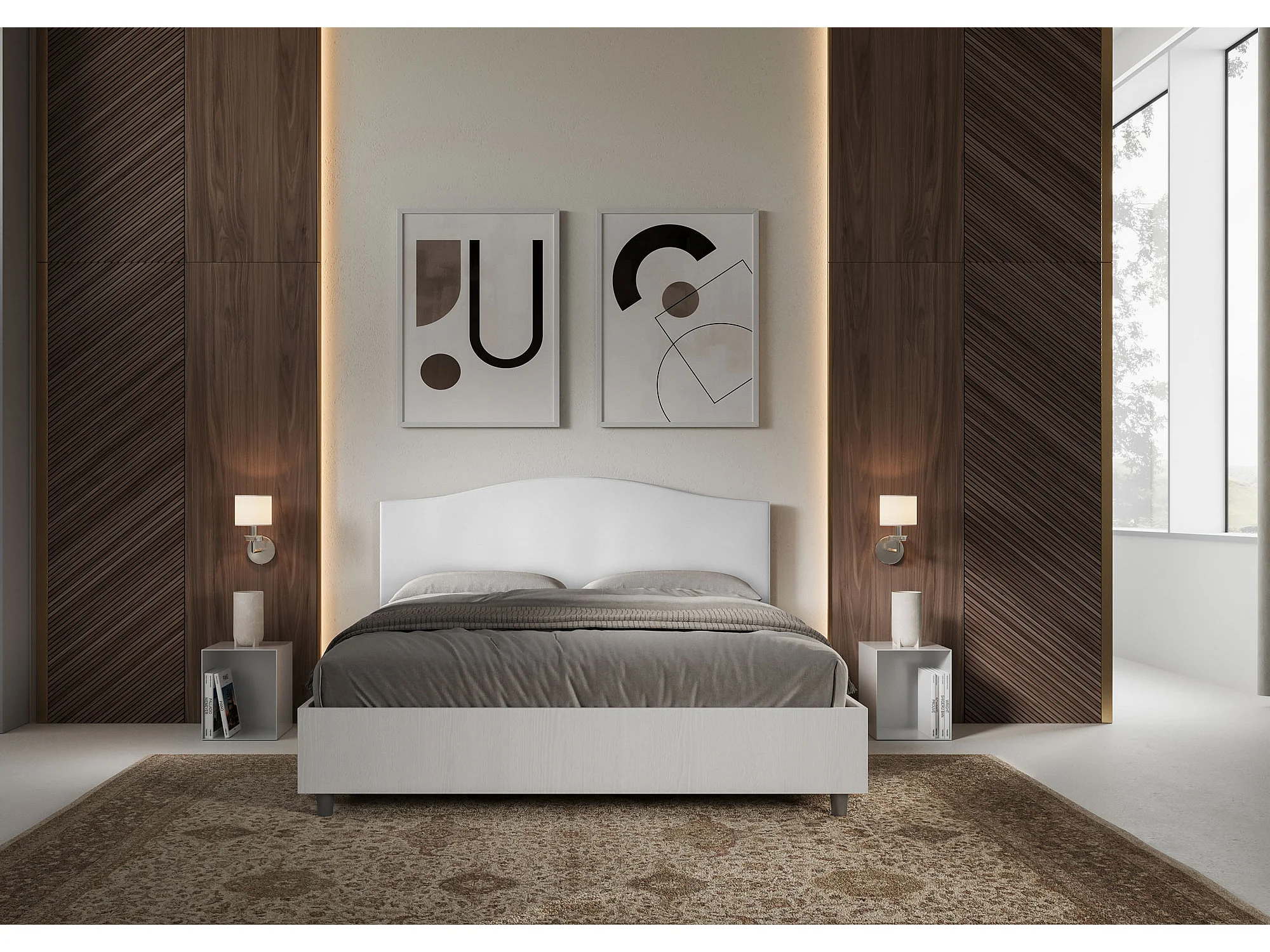 Lit avec sommier 160x190 structure frêne blanc tête de lit similicuir blanc Grace