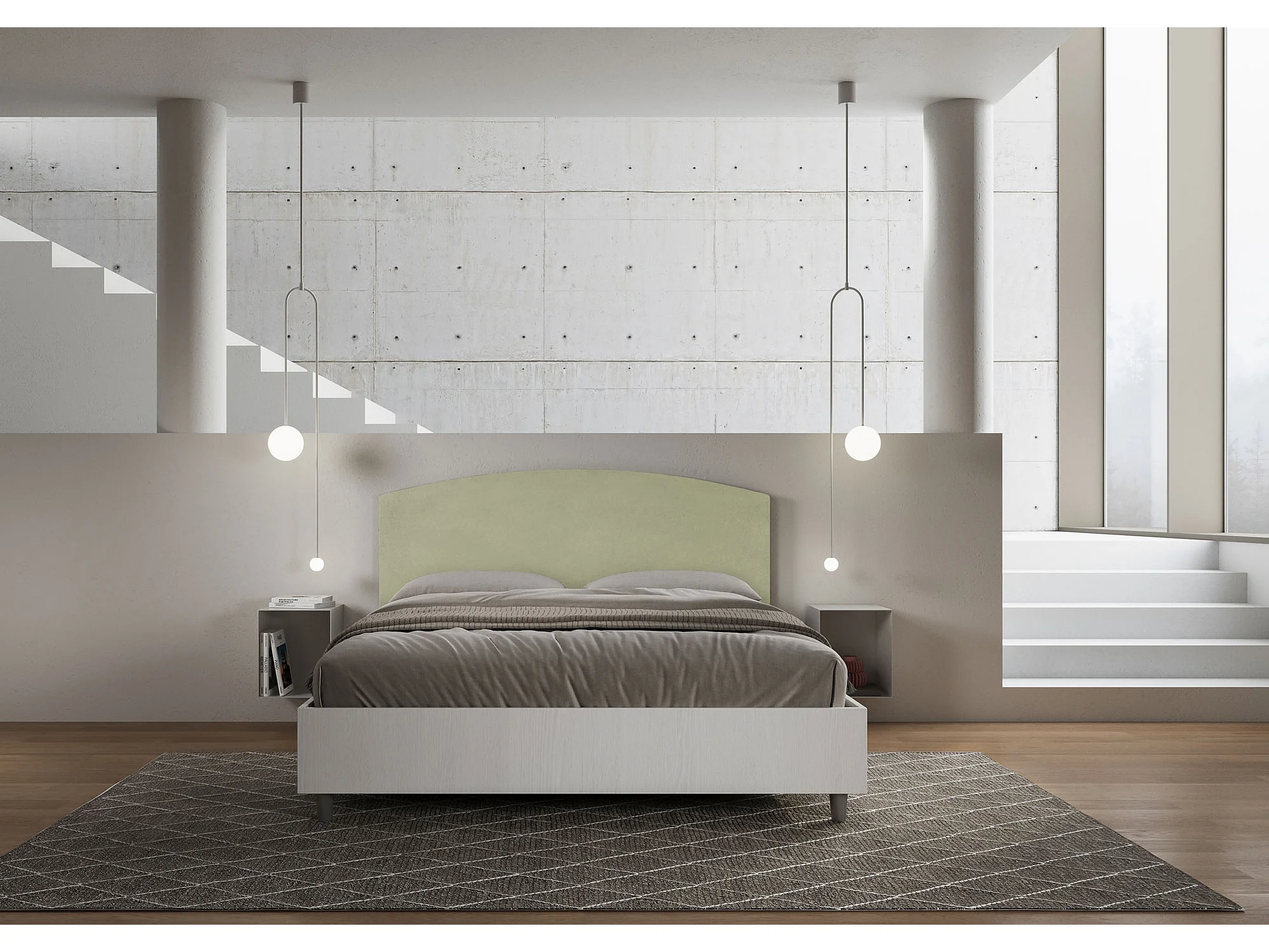 Lit avec sommier 160x200 structure frêne blanc tête de lit microfibre vert Antilia
