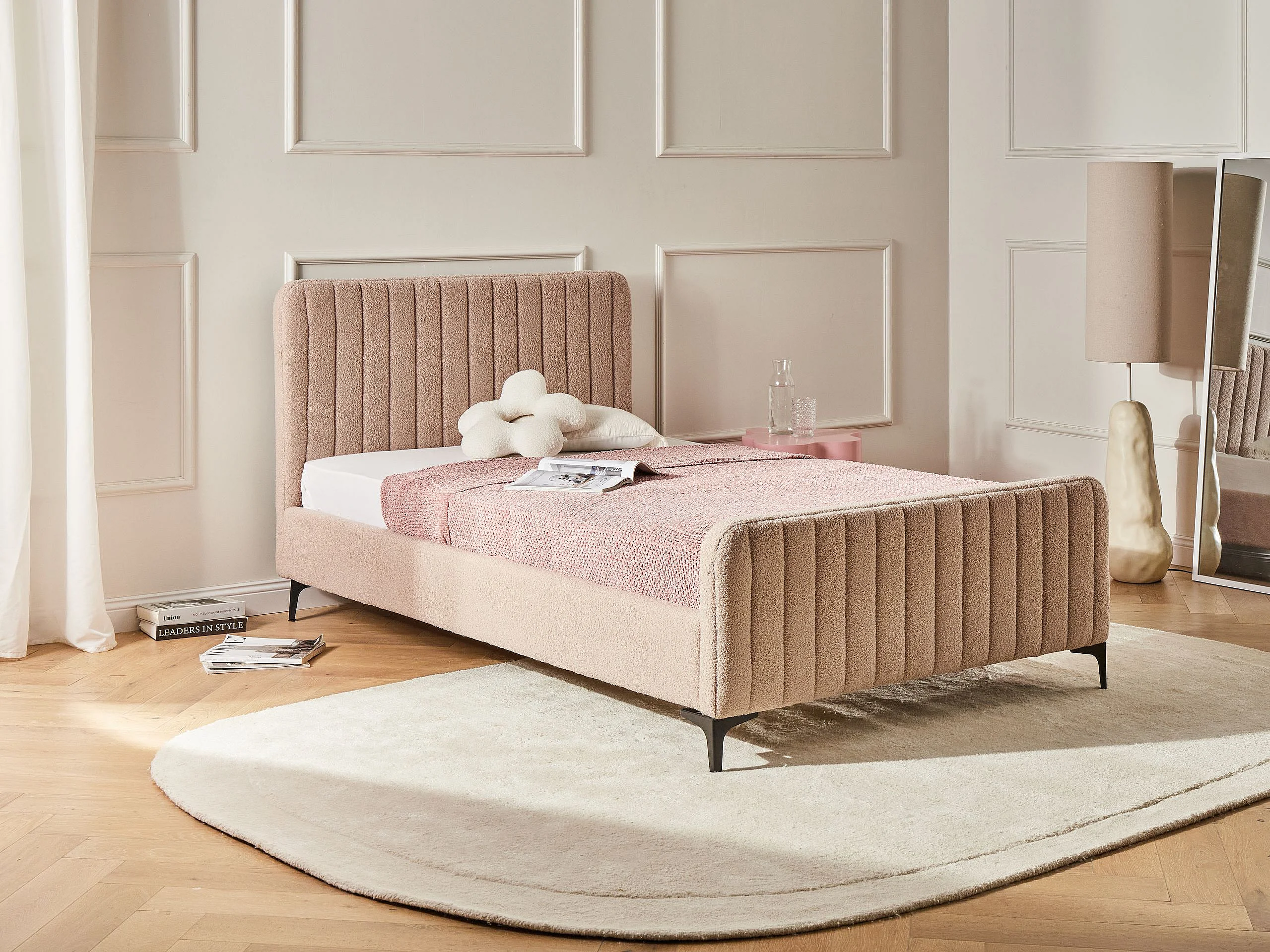 Lit avec sommier Bouclé LUNAN 120 x 200 cm Beige