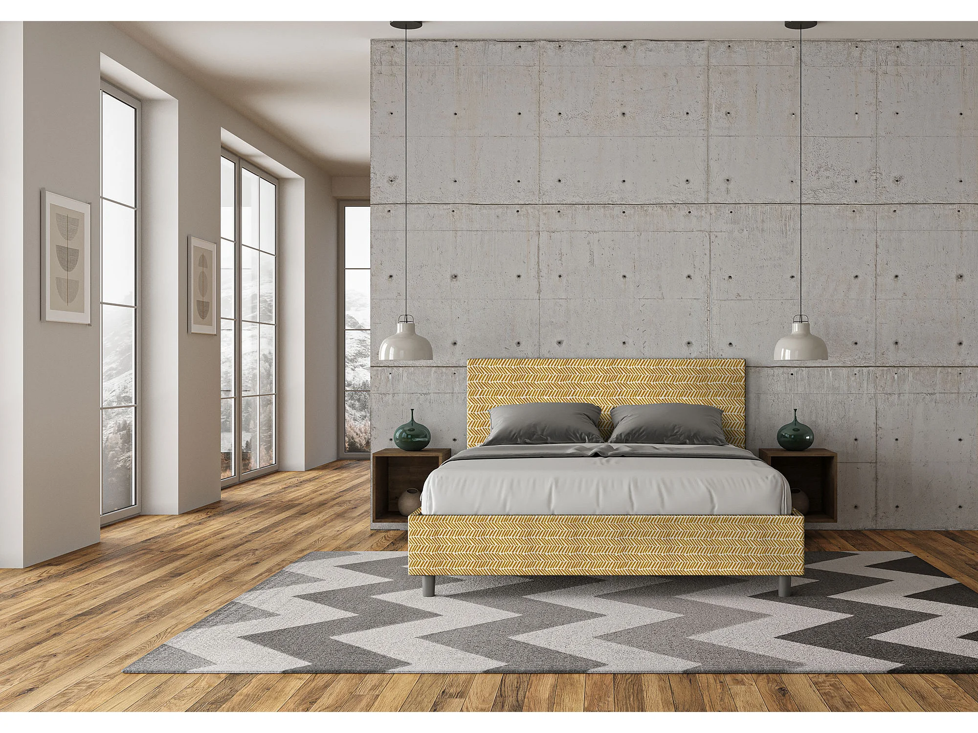 Lit avec sommier rembourré 160x210 tissu Aragona 3 jaune Adele