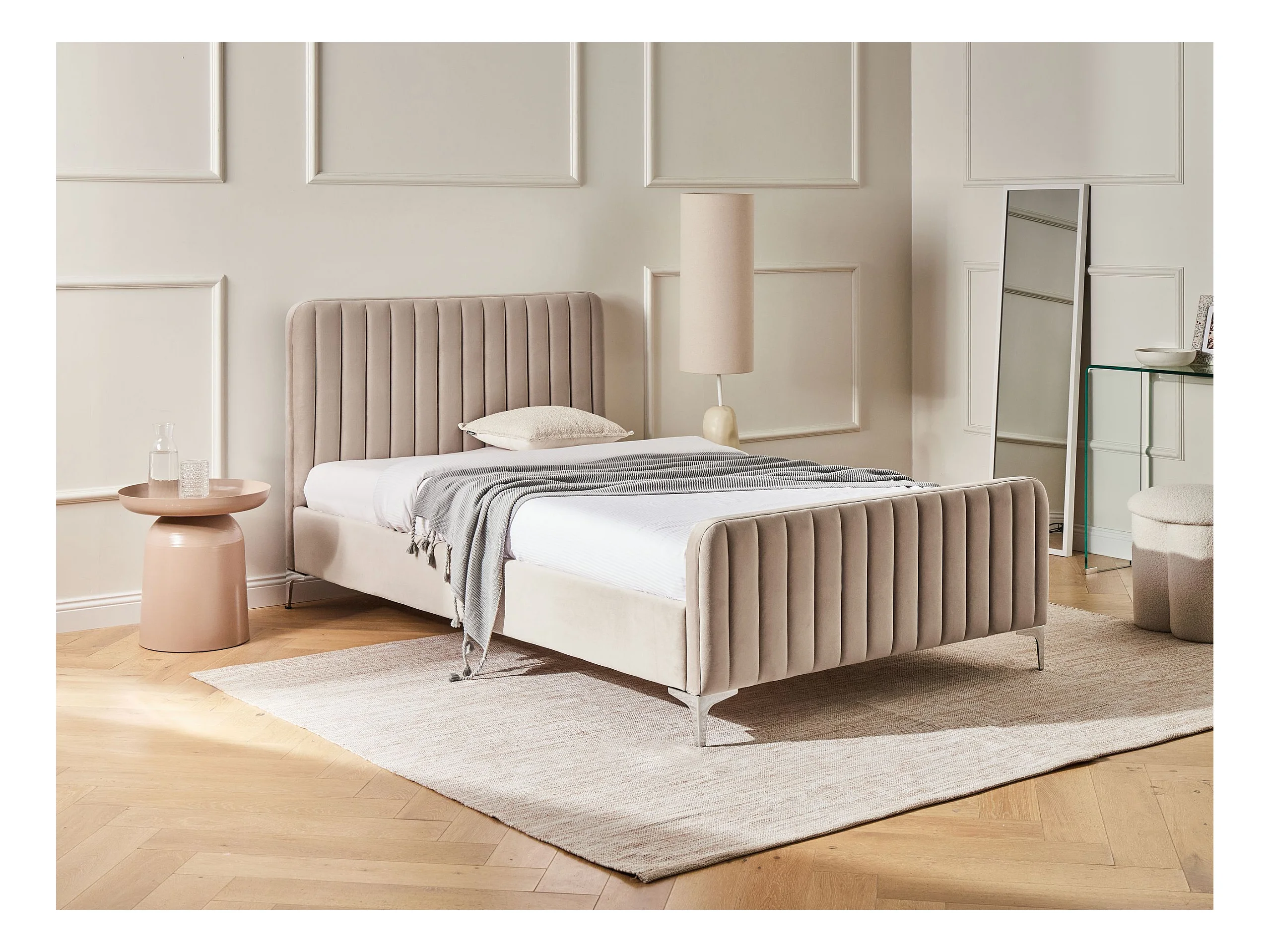 Lit avec sommier Velours LUNAN 120 x 200 cm Beige clair