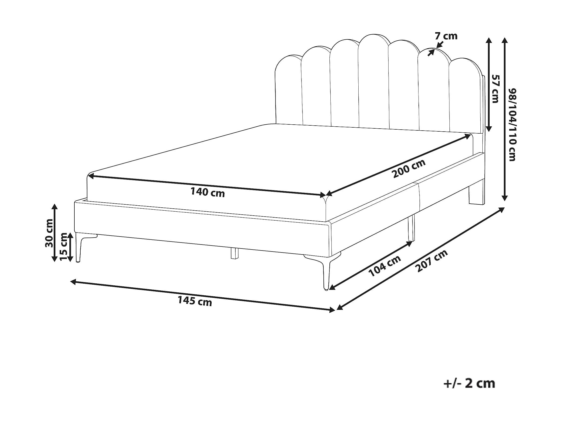 Lit avec sommier Velours SAUVIAN 140 x 200 cm Blanc cassé