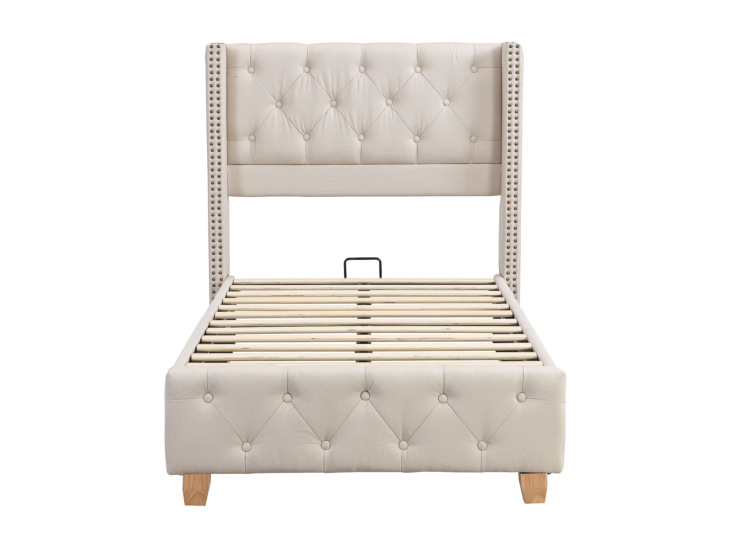 Lit avec tête de lit capitonné - 90 x 200 cm - tissu en lin - sommier à lattes - beige