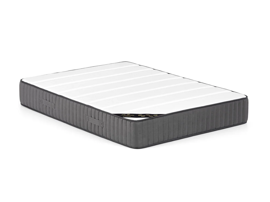 Lit 140 x 200 cm avec tête de lit capitonnée - Tissu - Beige + Matelas - MASSIMO