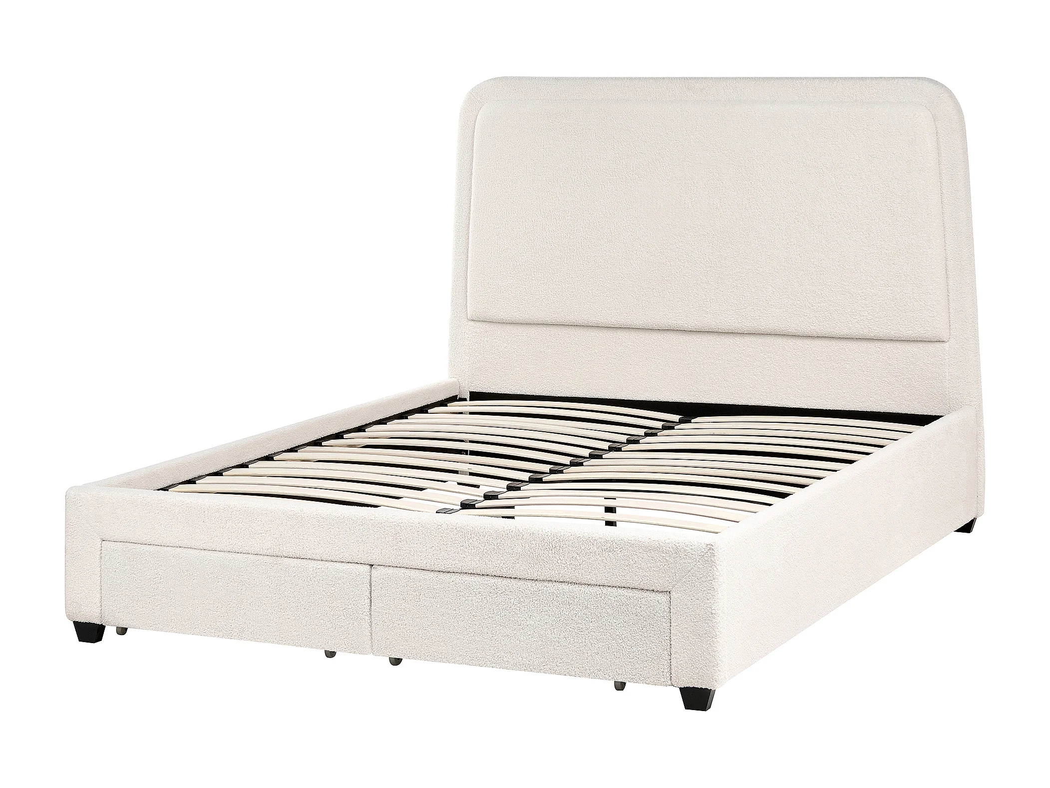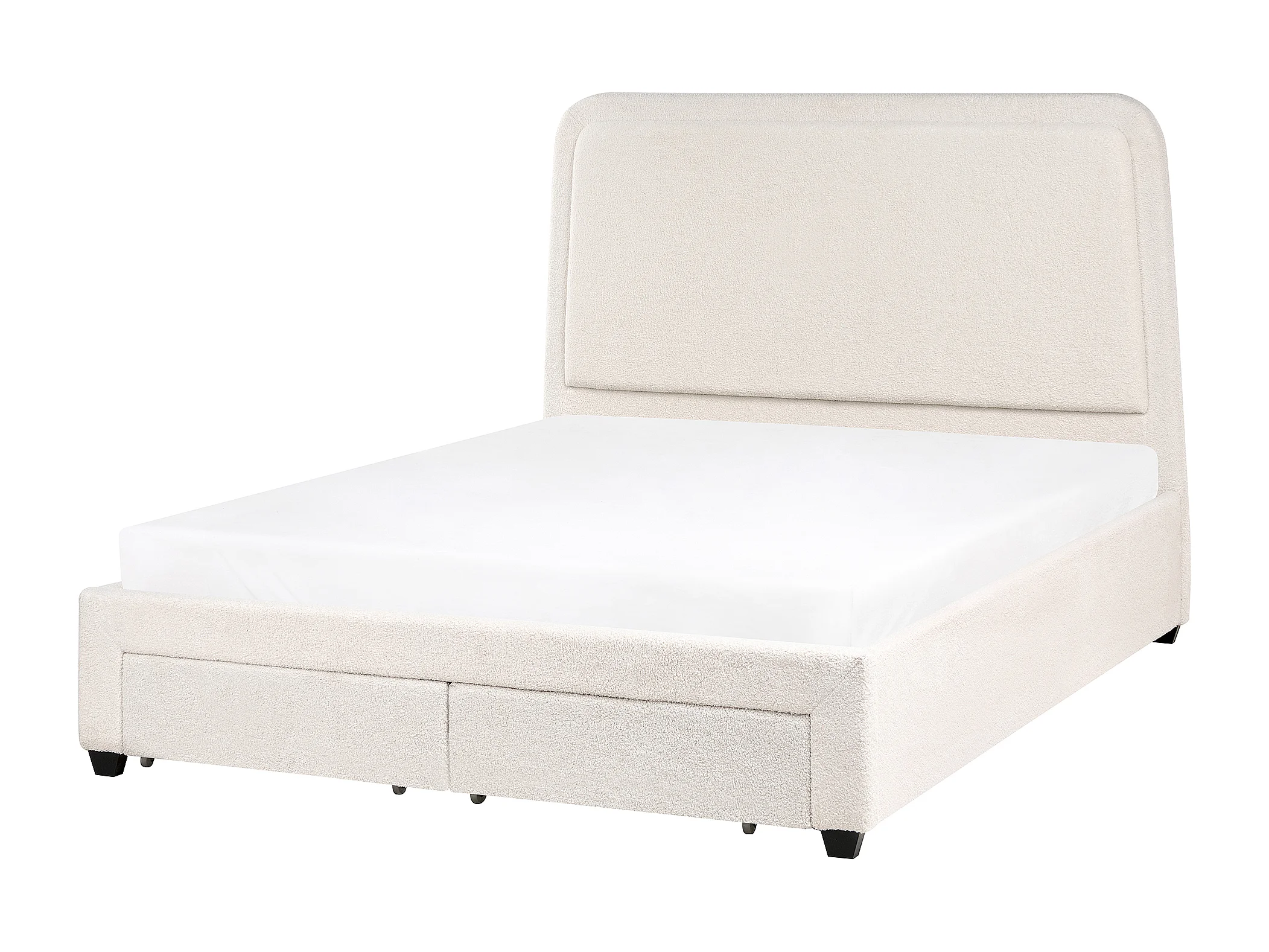 Lit avec tiroirs de rangement Bouclé SARDENT 140 x 200 cm Blanc cassé