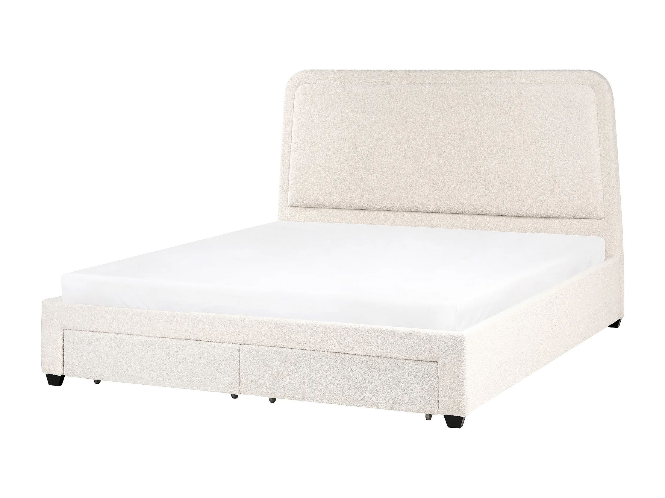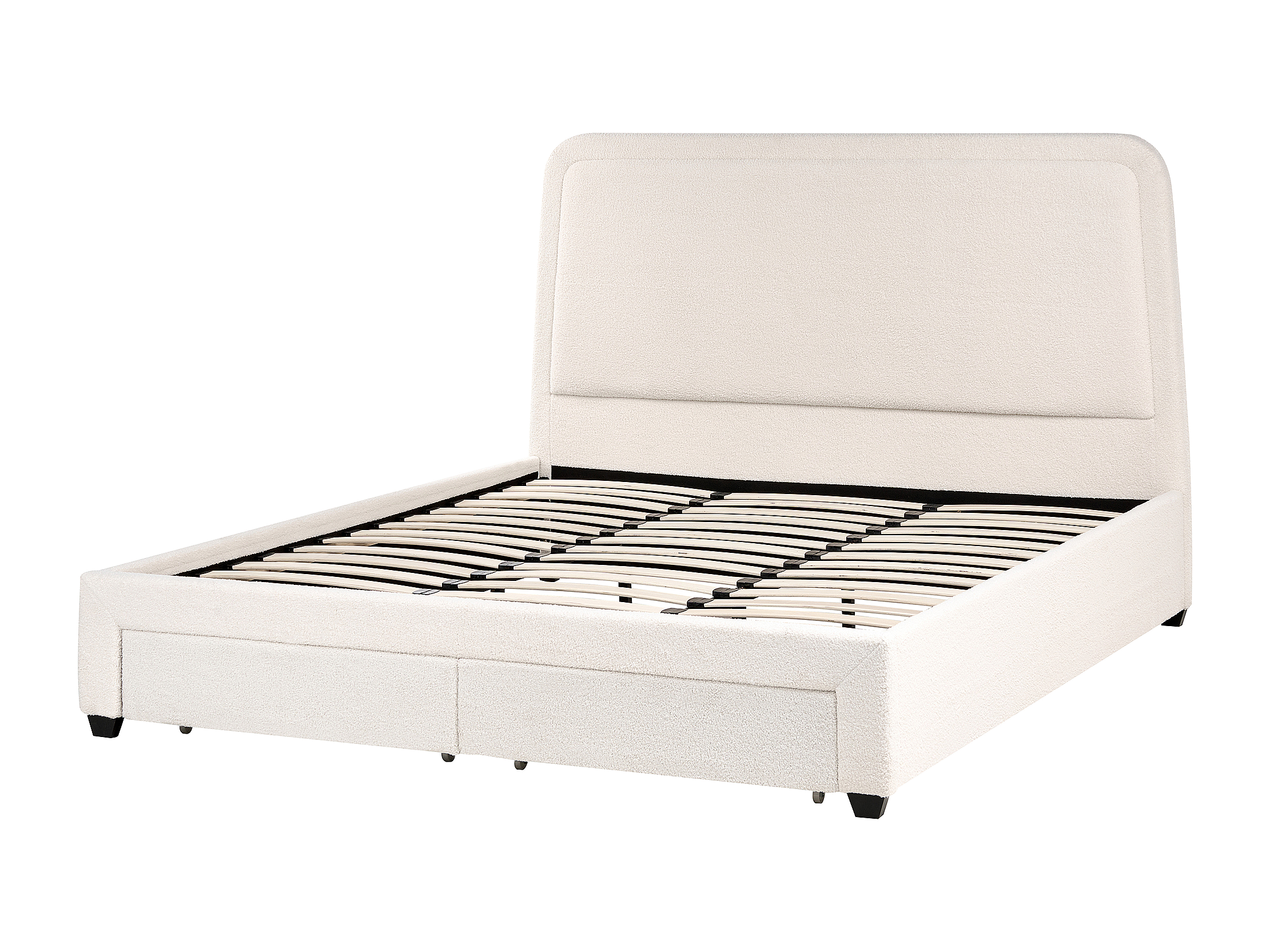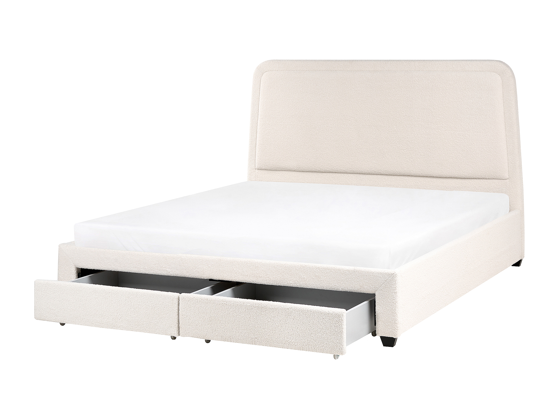 Lit avec tiroirs de rangement Bouclé SARDENT 180 x 200 cm Blanc cassé