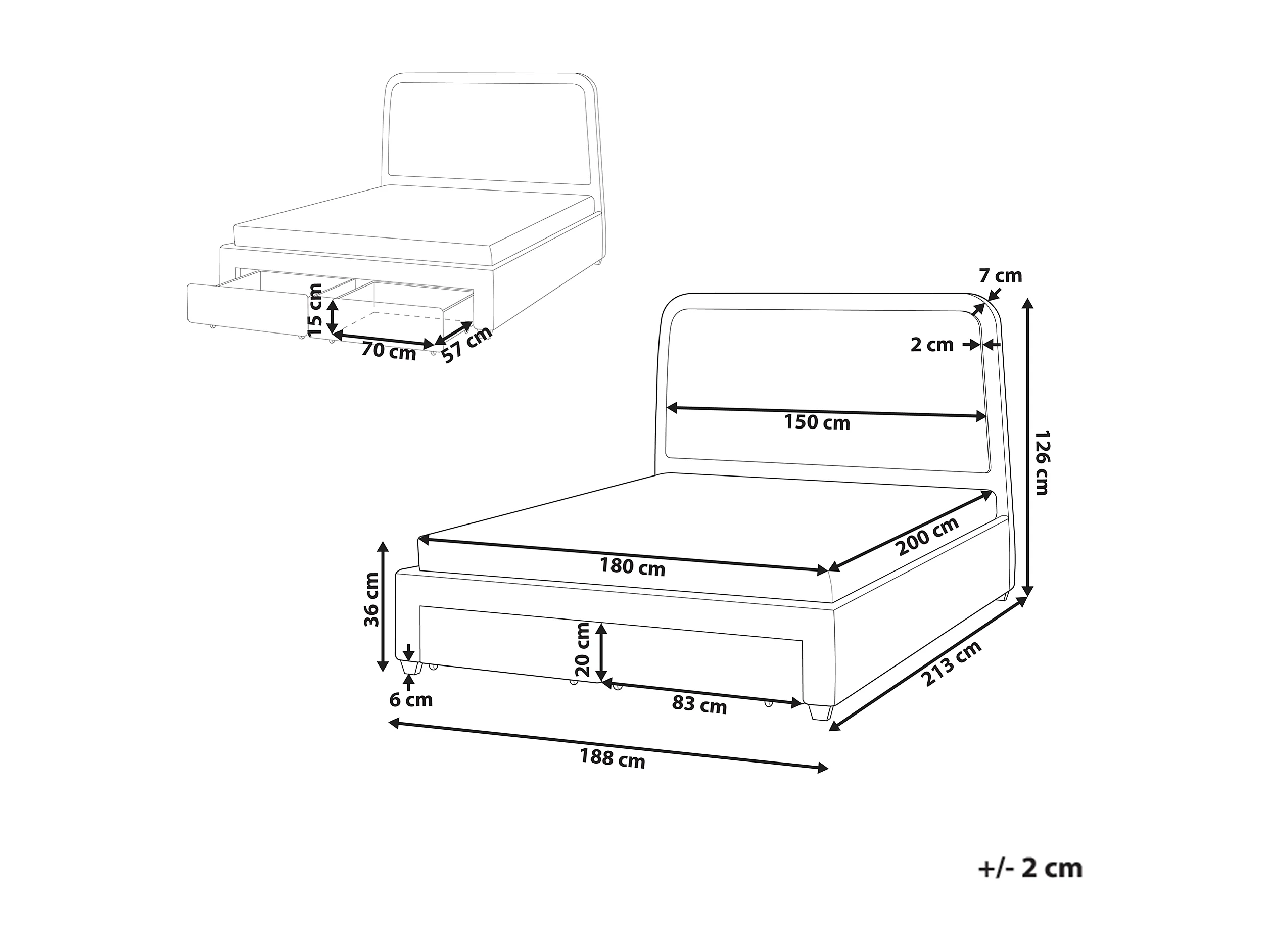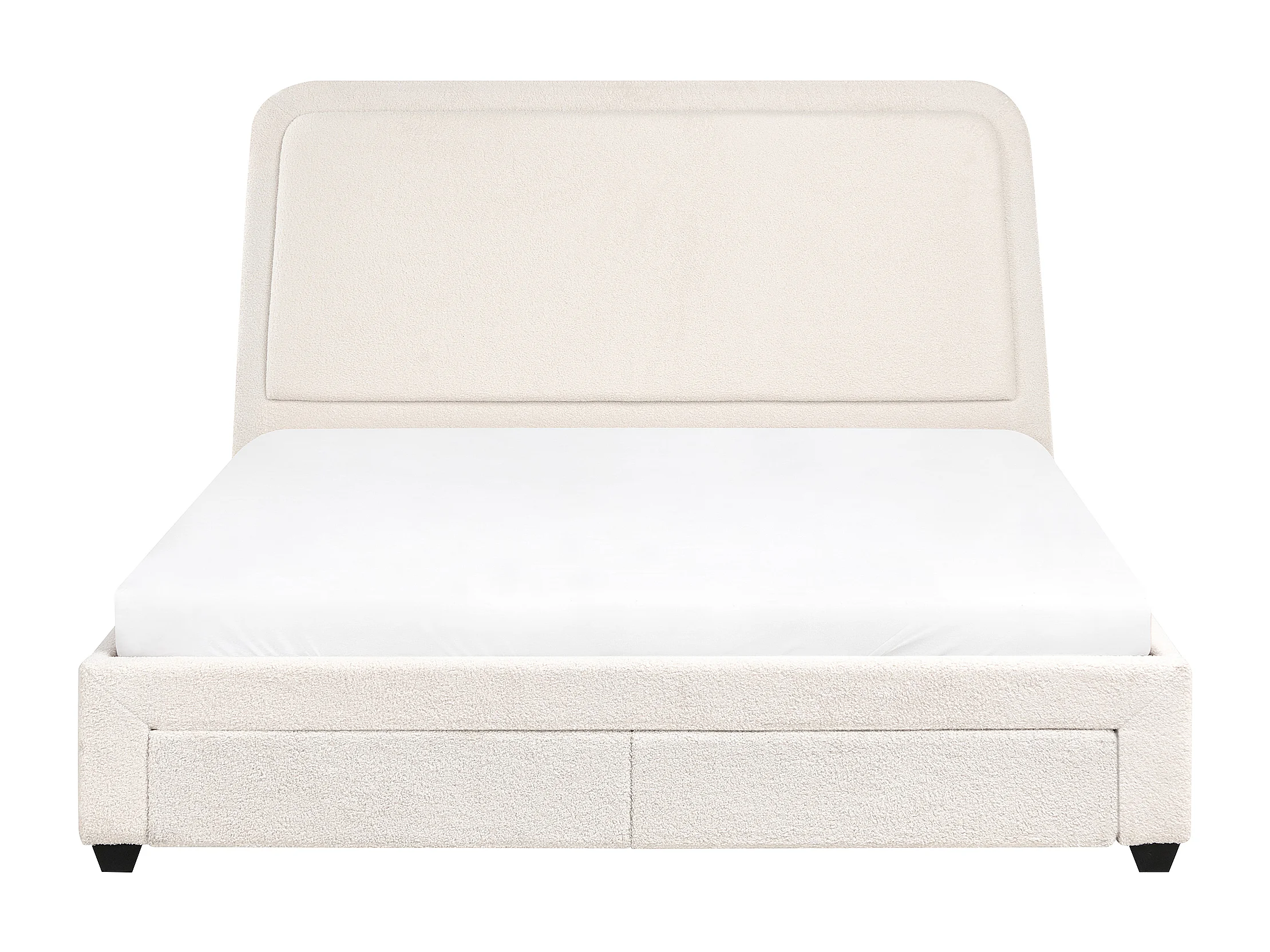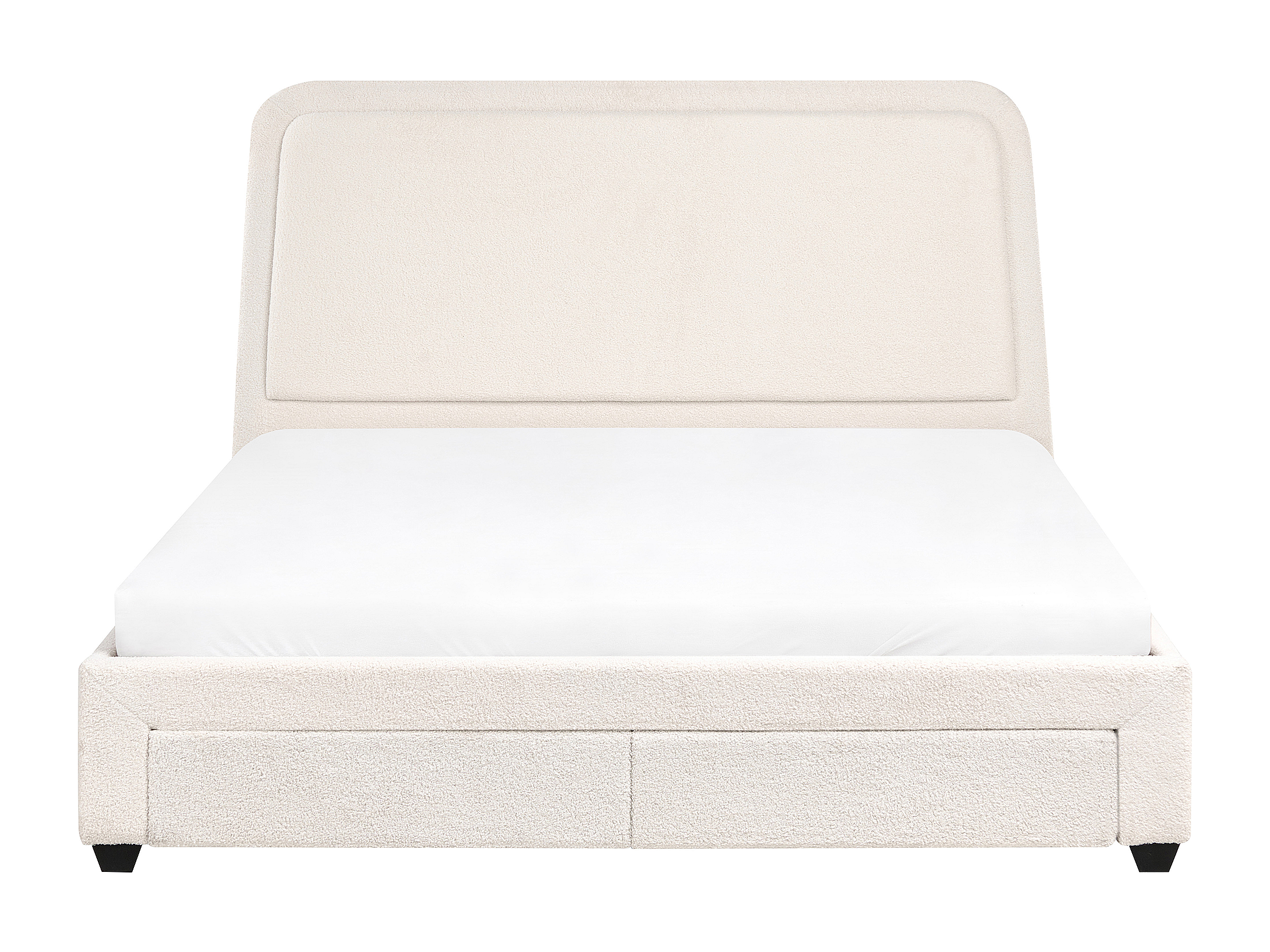 Lit avec tiroirs de rangement Bouclé SARDENT 180 x 200 cm Blanc cassé