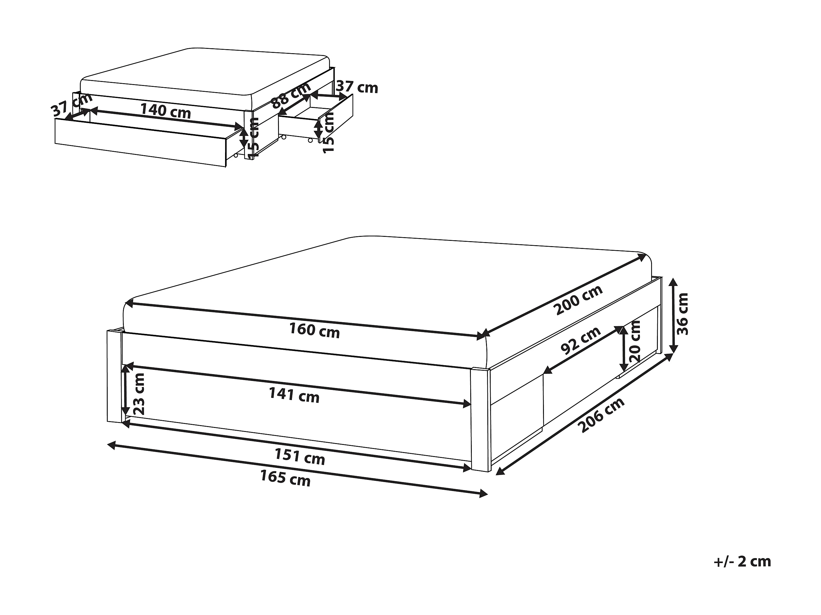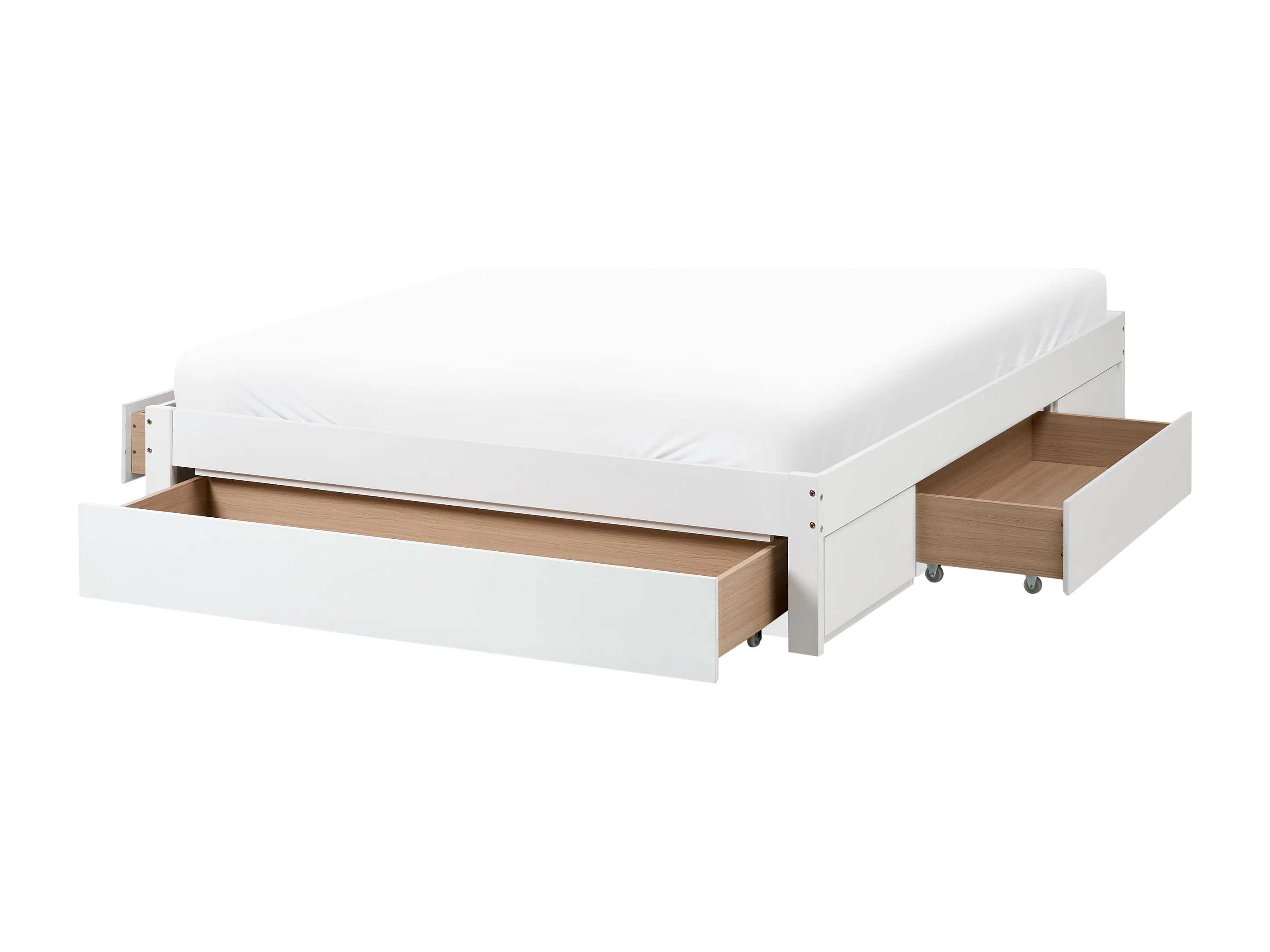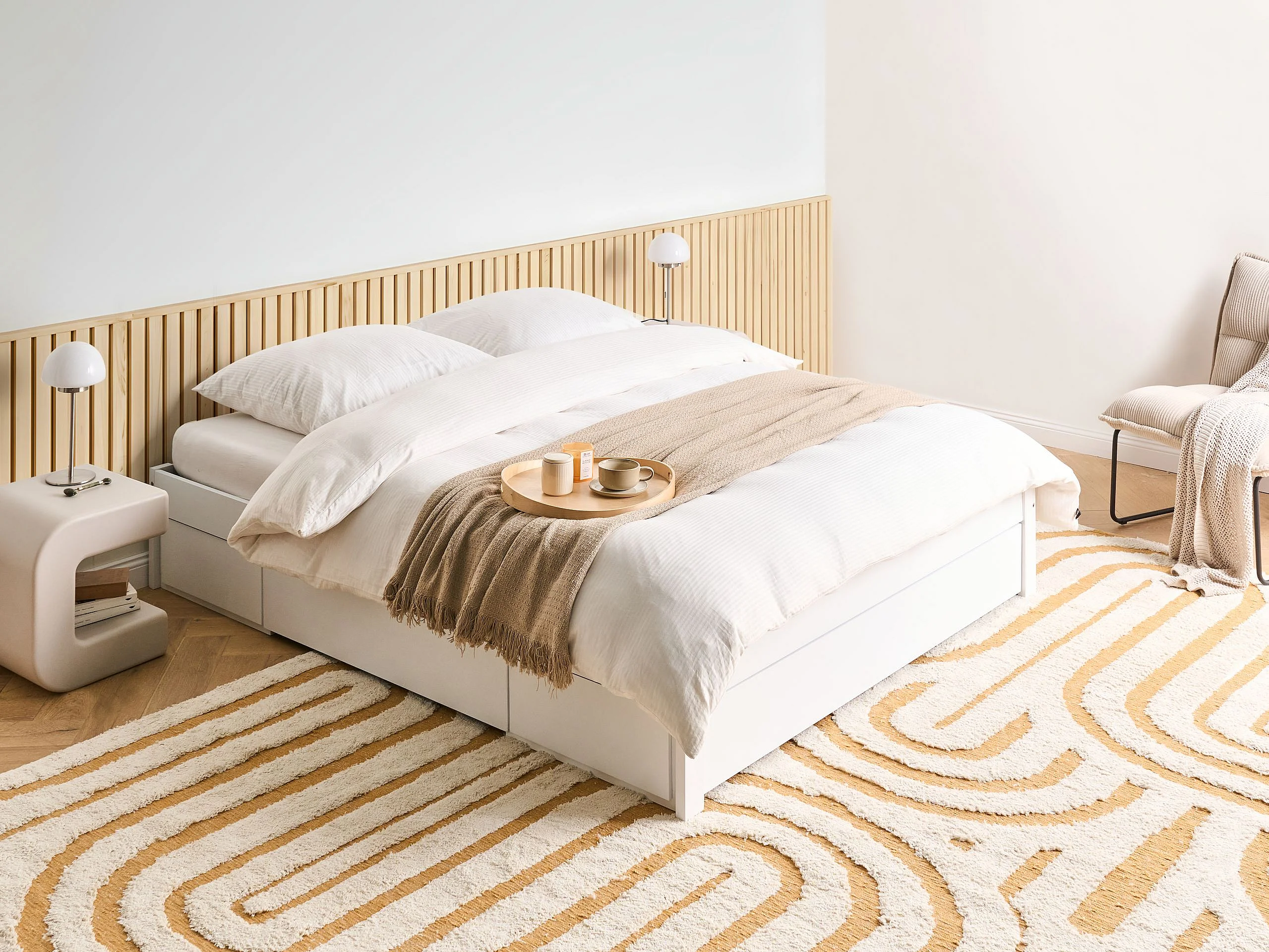 Lit avec tiroirs de rangement sans tête de lit BRUX 160 x 200 cm Blanc