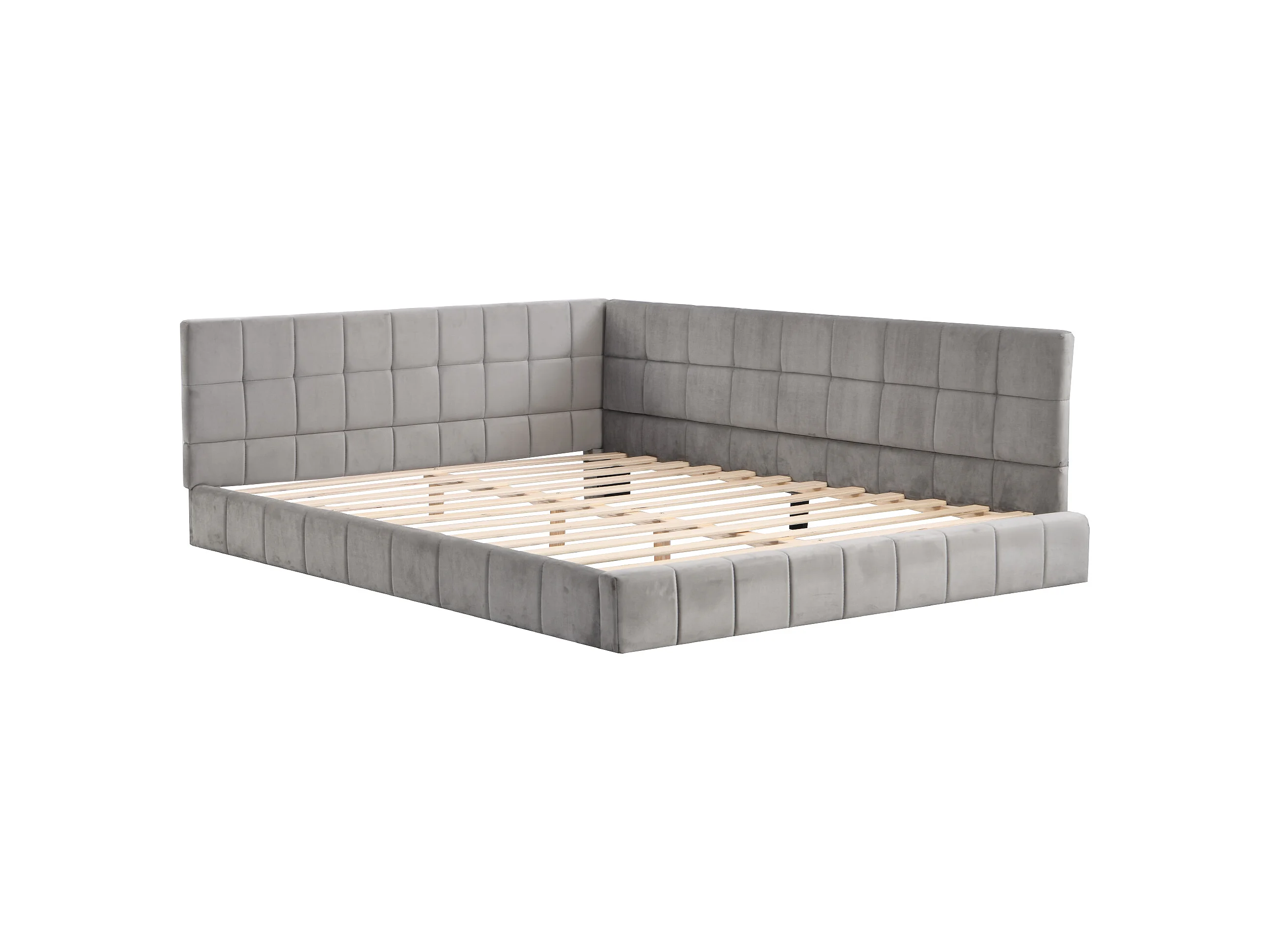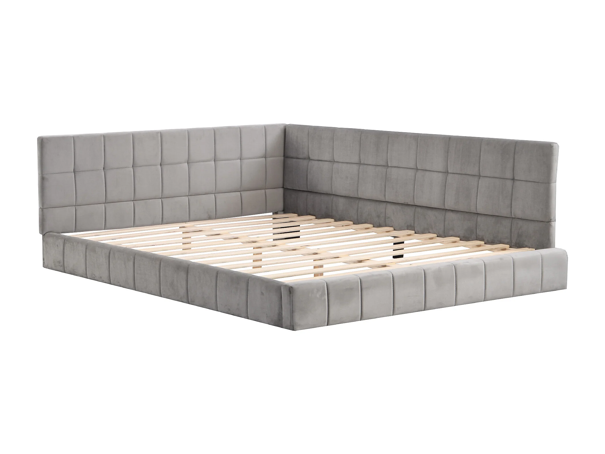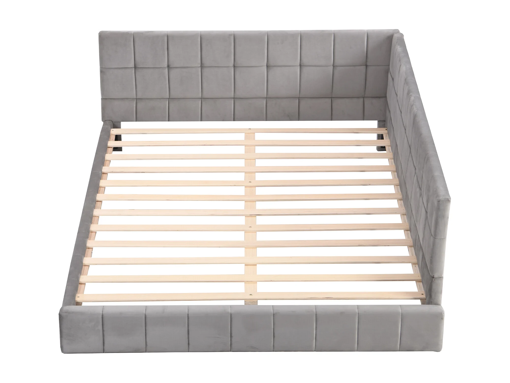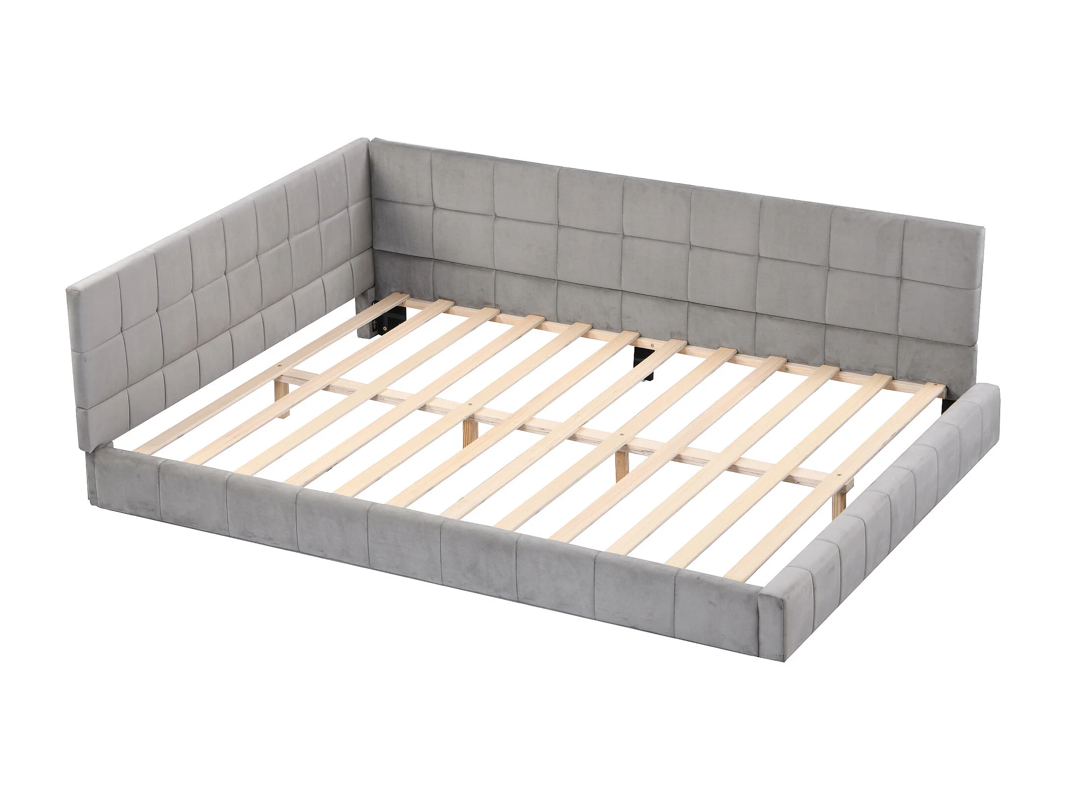 Lit banquette 140x200cm avec Cadre de lit à lattes Revêtement en velours en gris pour Salon et chambre