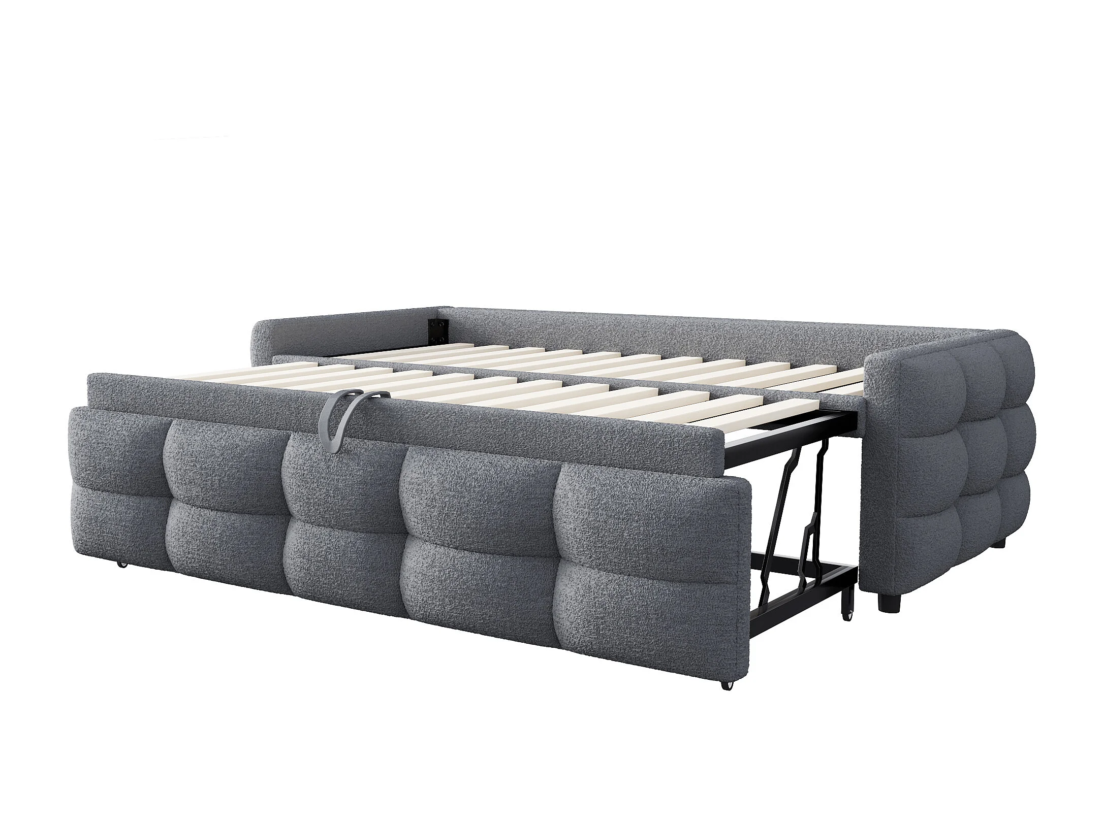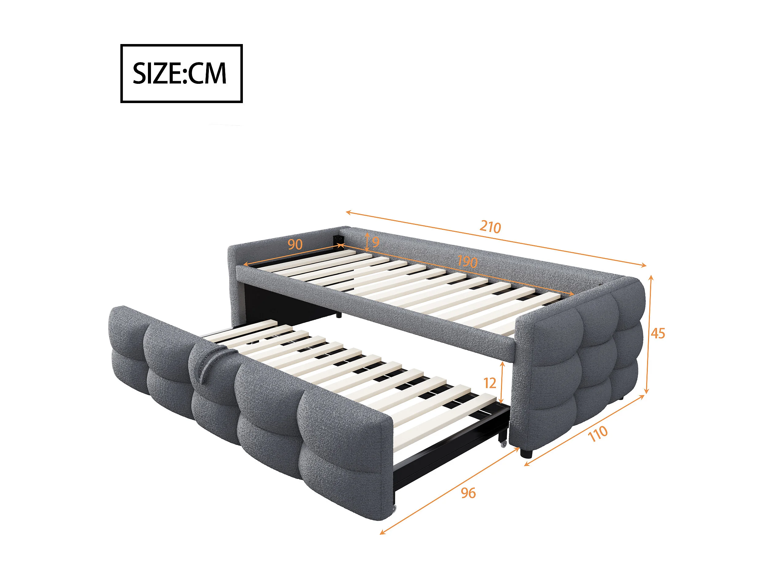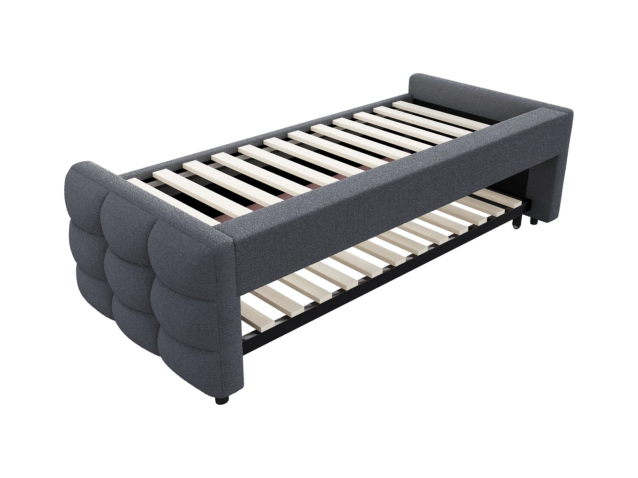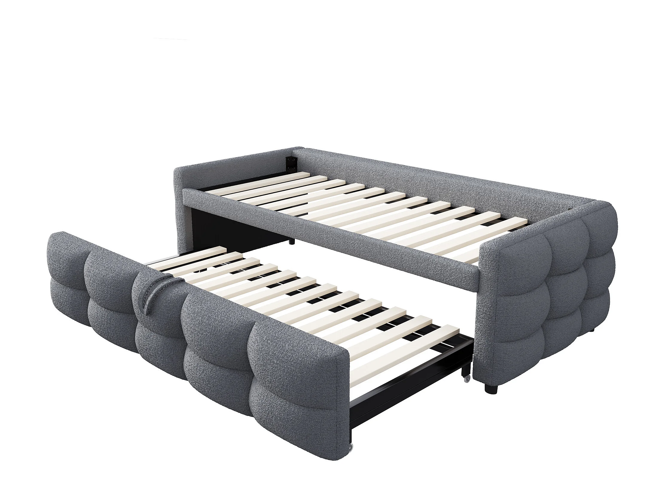 Lit banquette 90/180x190cm gris en tissu Teddy, en forme de nuage, lit enfant/adulte, sans matelas