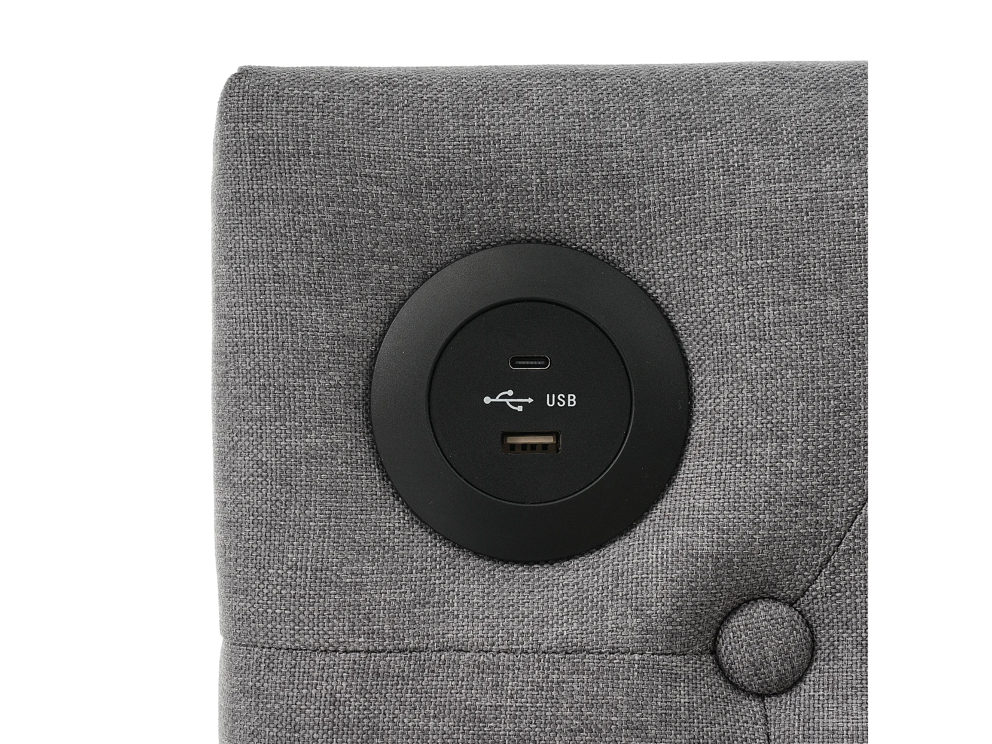 Canapé-lit capitonné - 90 x 200 cm - avec rangement hydraulique + USB & Type-C - velours - gris