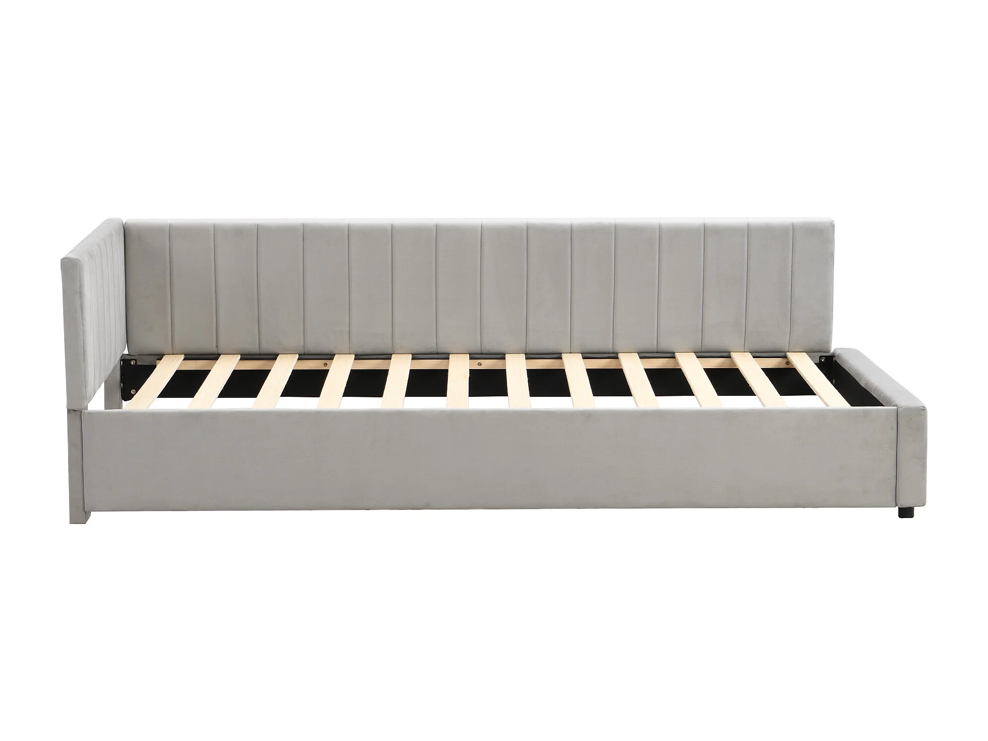 Lit banquette 90x200 cm Lit enfant avec dossier et sommier à lattes en bois - velours gris (sans matelas)