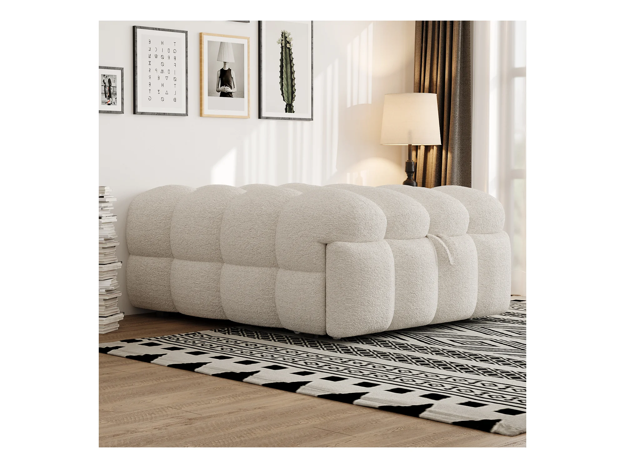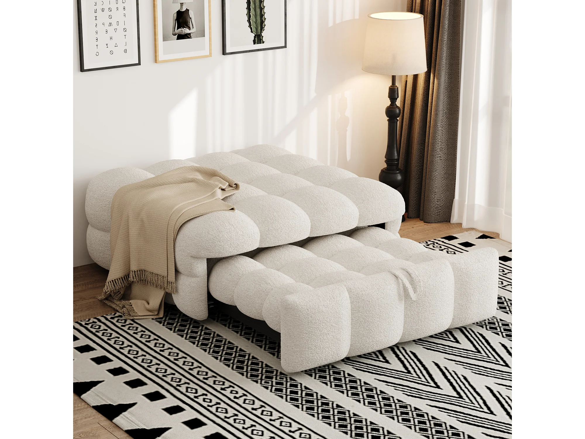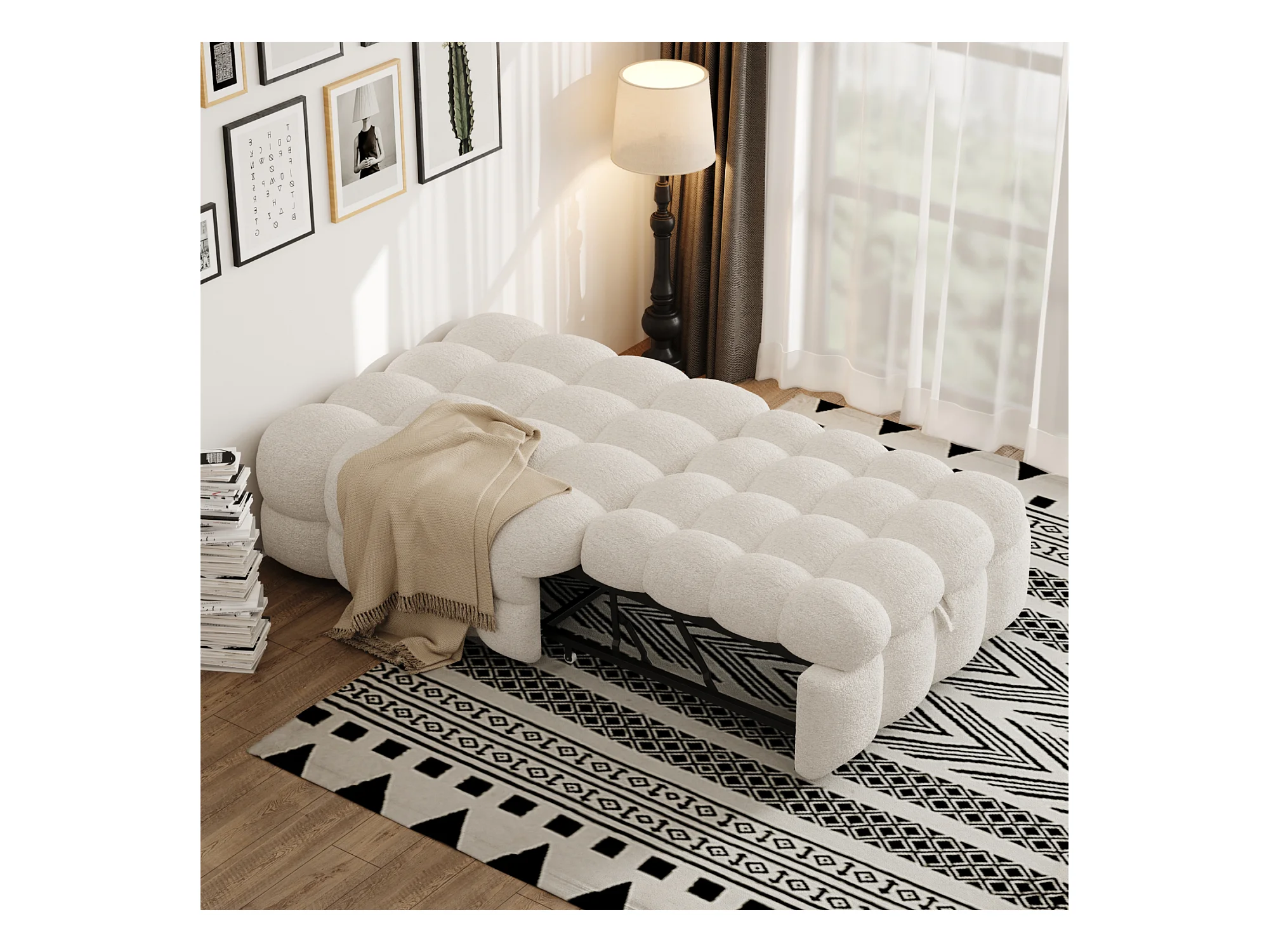 Lit banquette beige - Lit simple avec rembourrage en mousse et pliable - tissu teddy