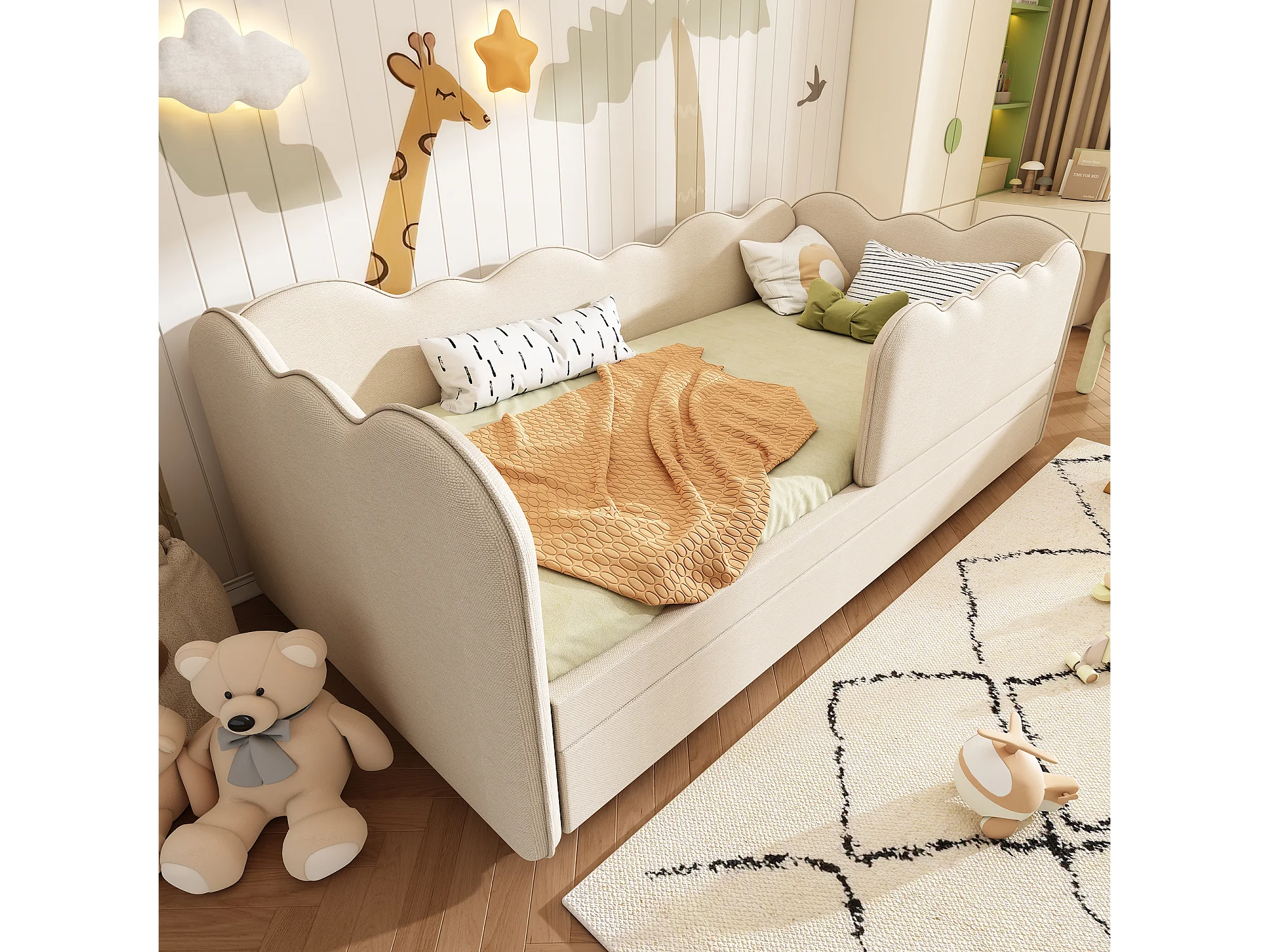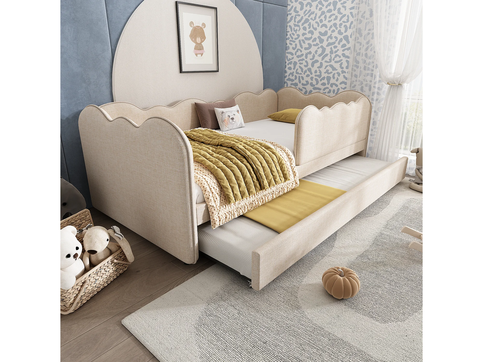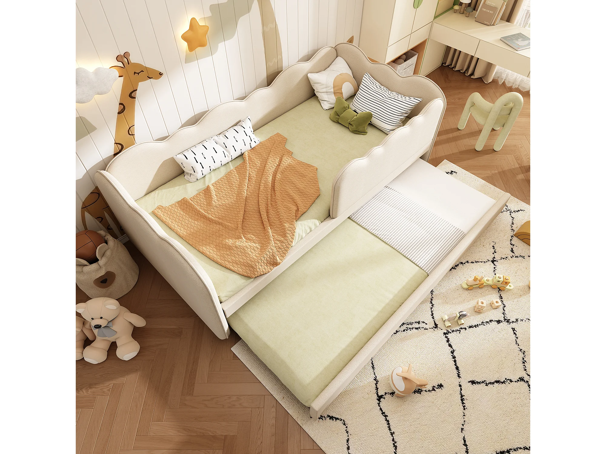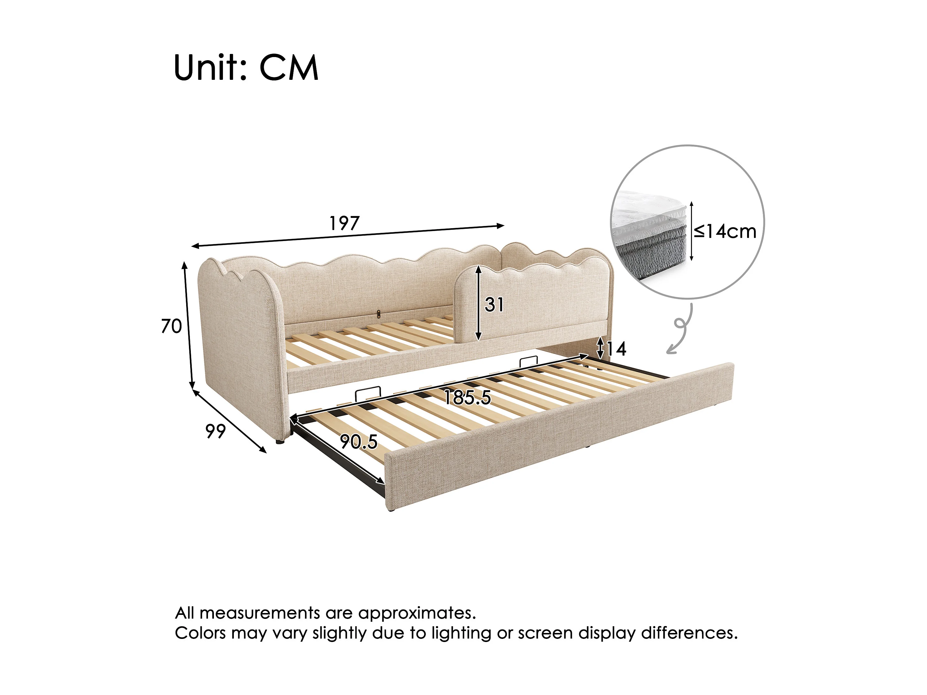 Lit Banquette capitonné 90×190 cm, lit d’appoint extensible avec sommier, tissu lin beige, sans matelas
