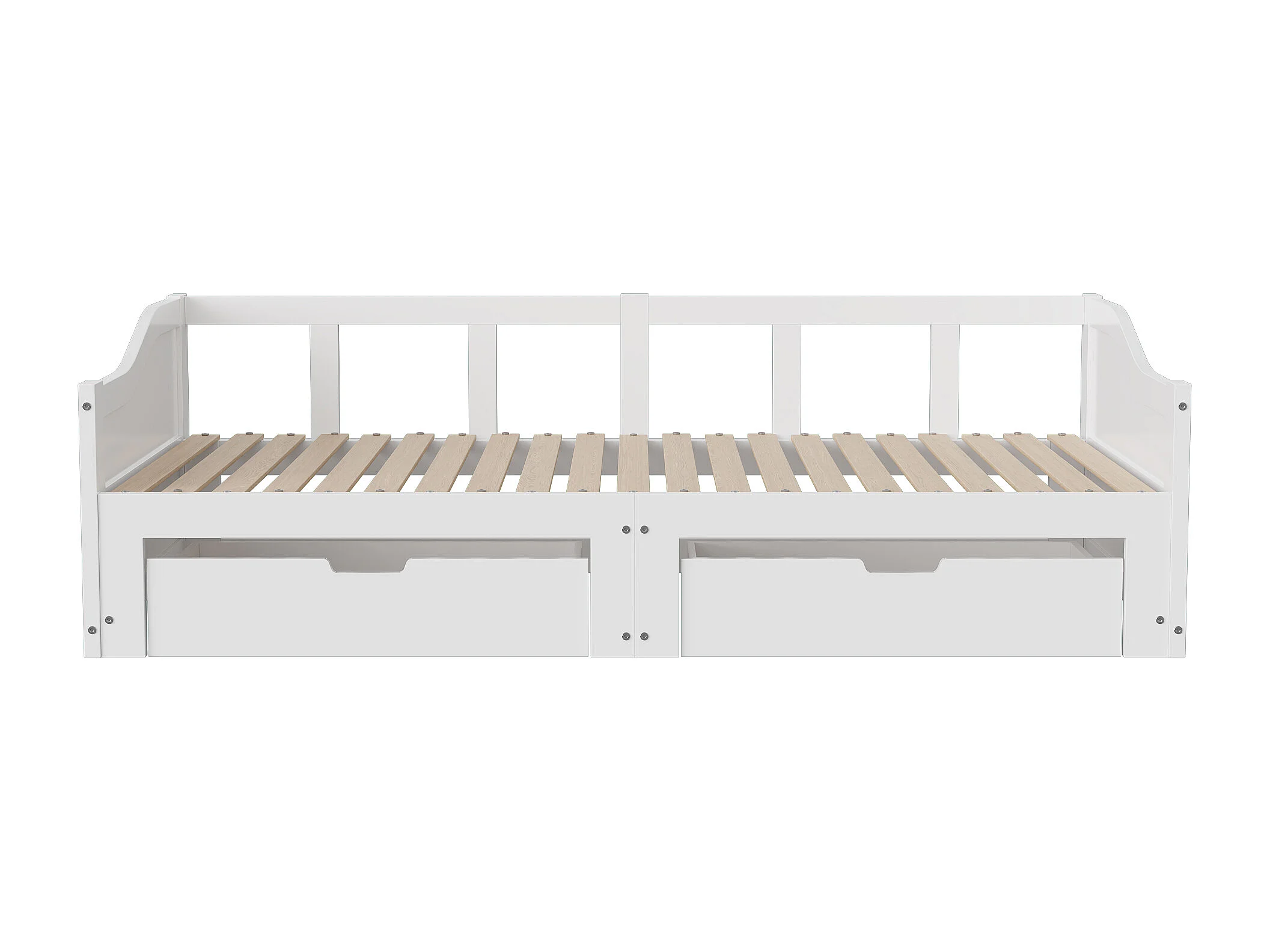 Lit banquette extensible en bois massif 90x200 cm avec 2 tiroirs de rangement – Transformable en lit double 180x200 cm