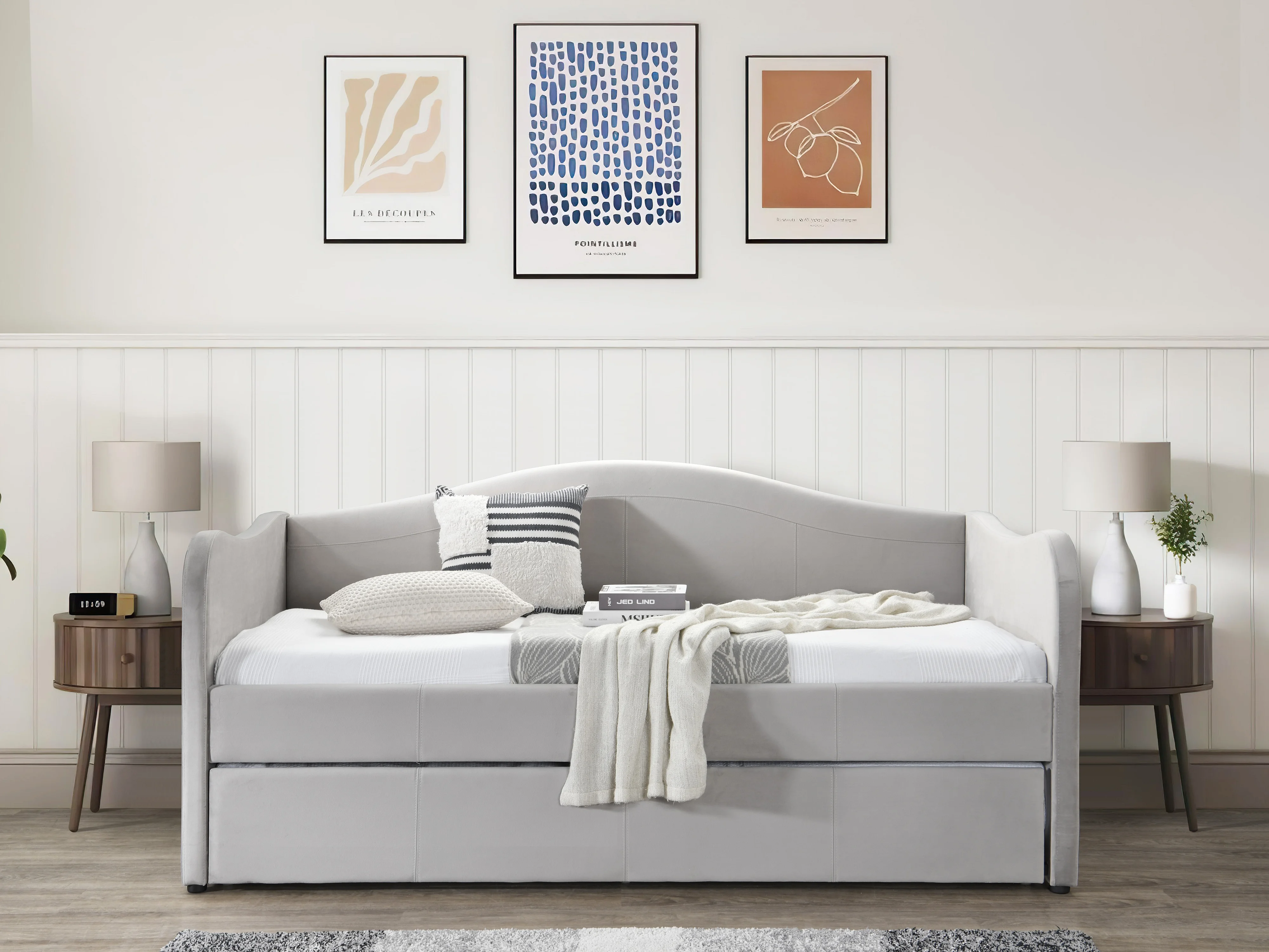 Lit banquette gigogne 2 x 90 x 190 cm - Velours - Gris clair + Matelas - MATHILDE