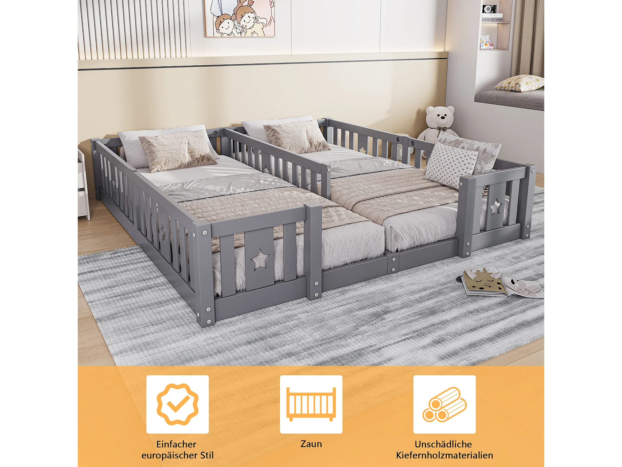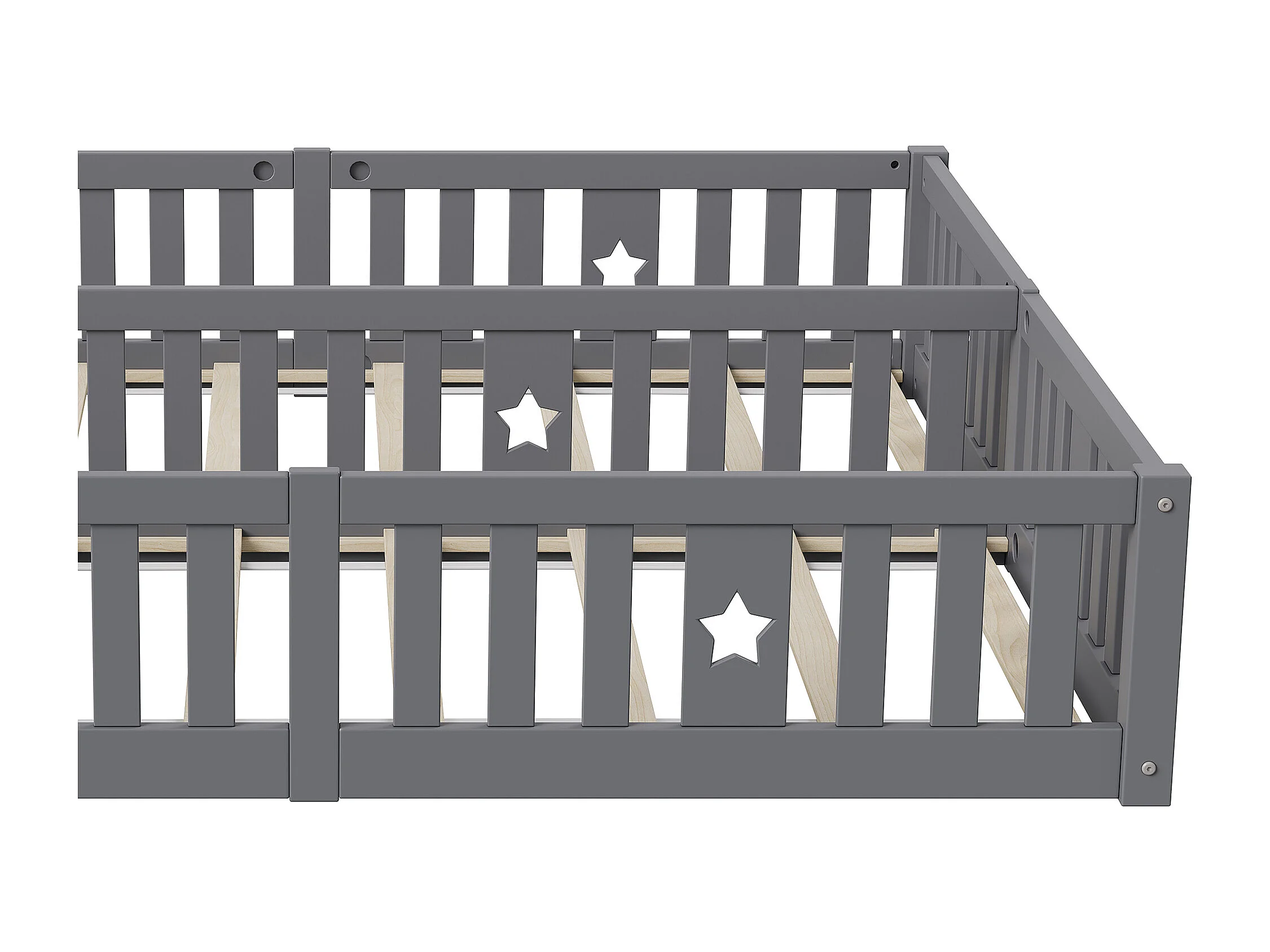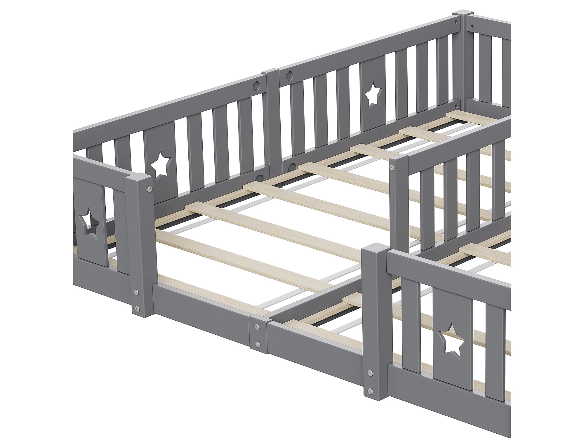 Lit bébé 180x200 cm - avec barrières de sécurité et sommier à lattes - convient pour 2 enfants - gris