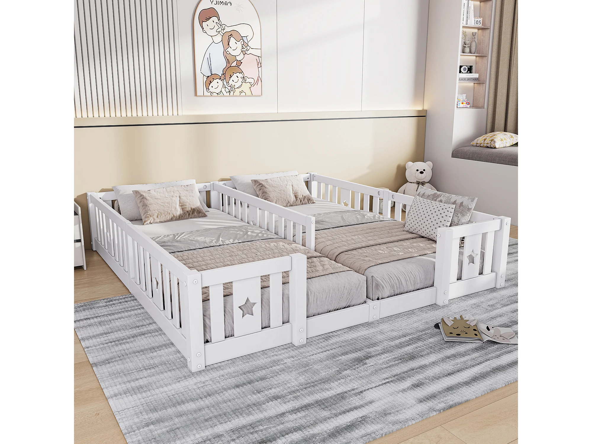 Lit bébé 180x200 cm avec barrières de sécurité - sommier non inclus - convient pour 2 enfants - blanc