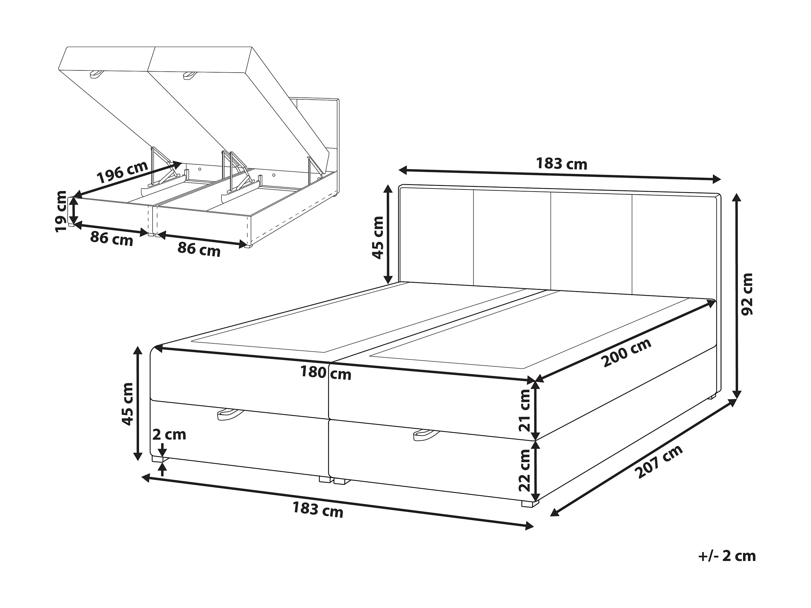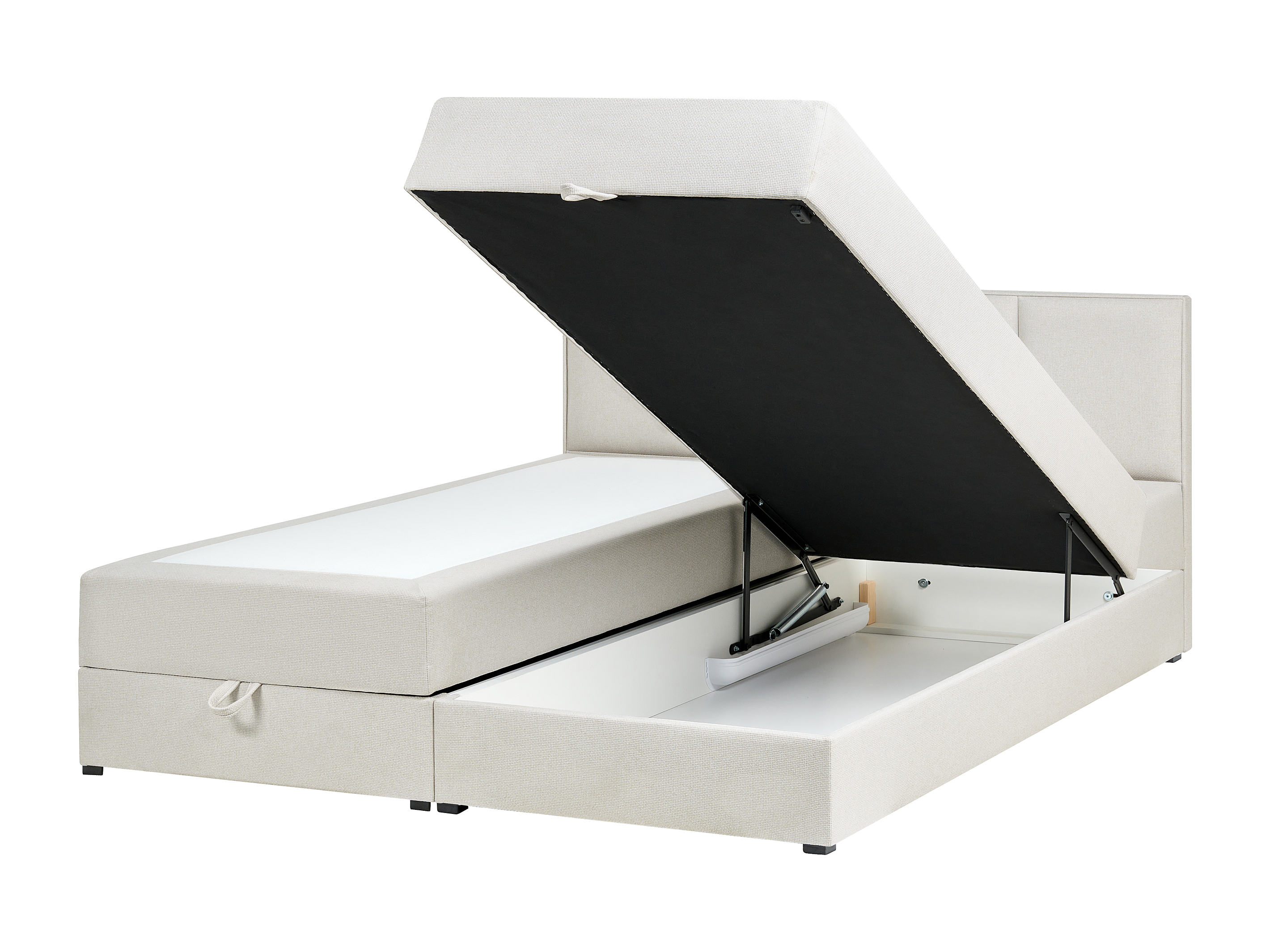 Lit boxspring avec rangement Tissu BARONET 180 x 200 cm Blanc cassé