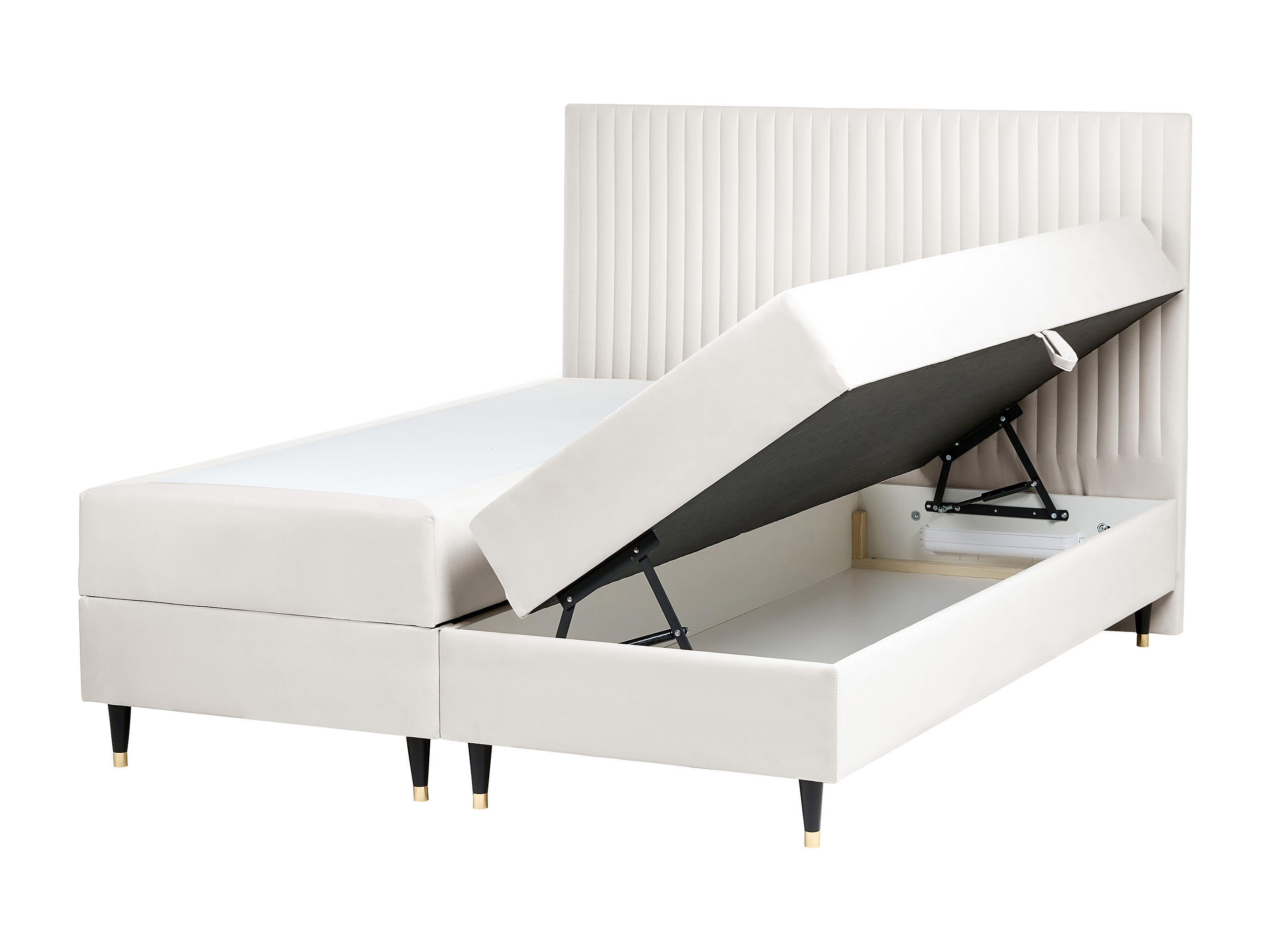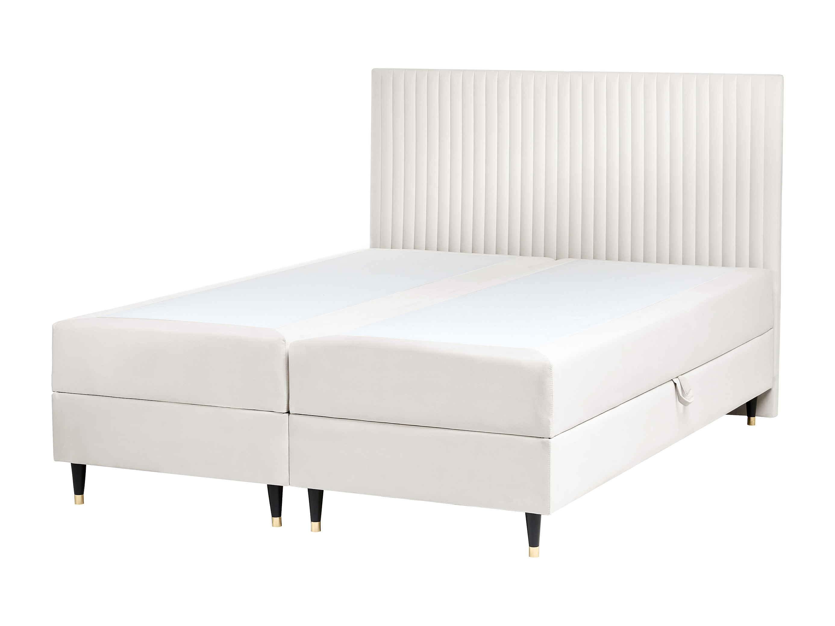 Lit boxspring avec rangement Velours DAME 160 x 200 cm Blanc cassé