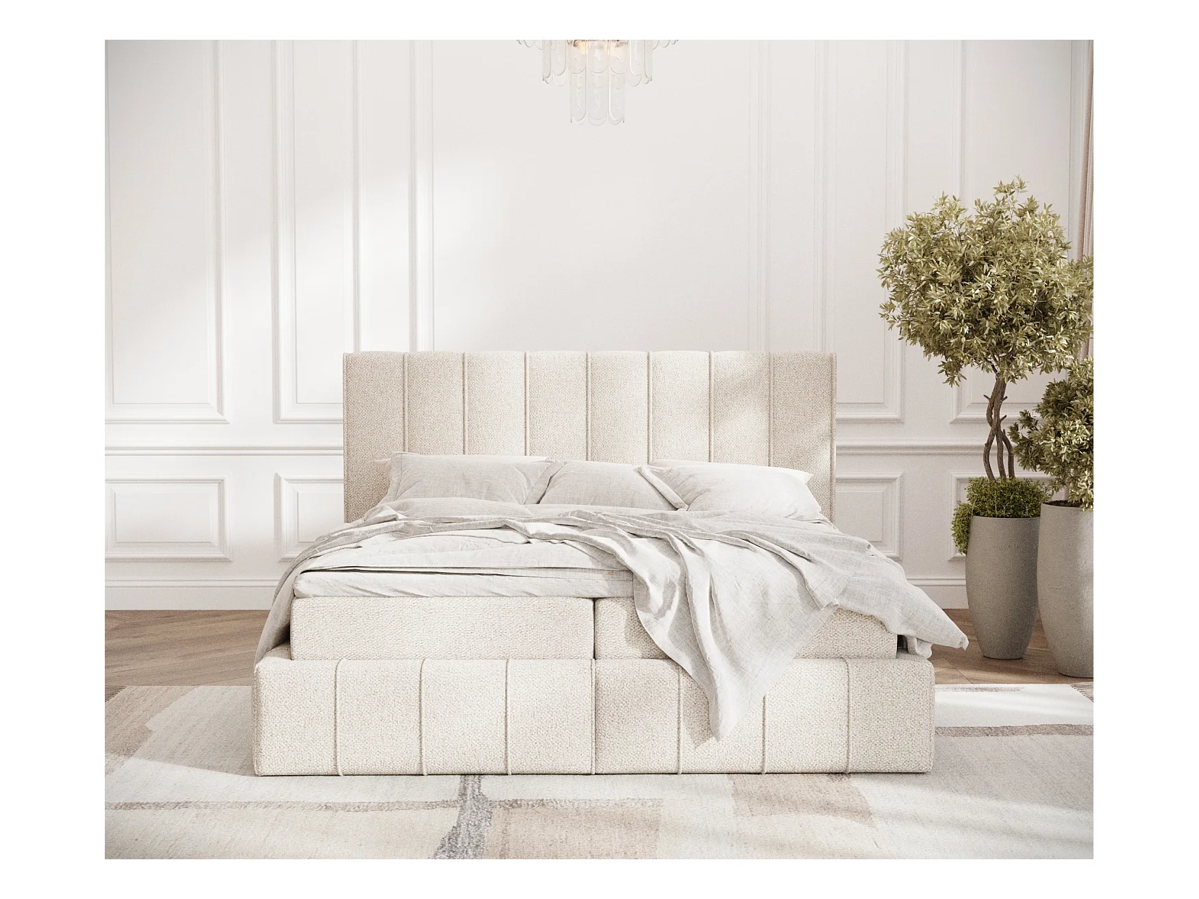 Lit boxspring en tissu bouclette Moretti - matelas - surmatelas - 140x200 cm - cream
