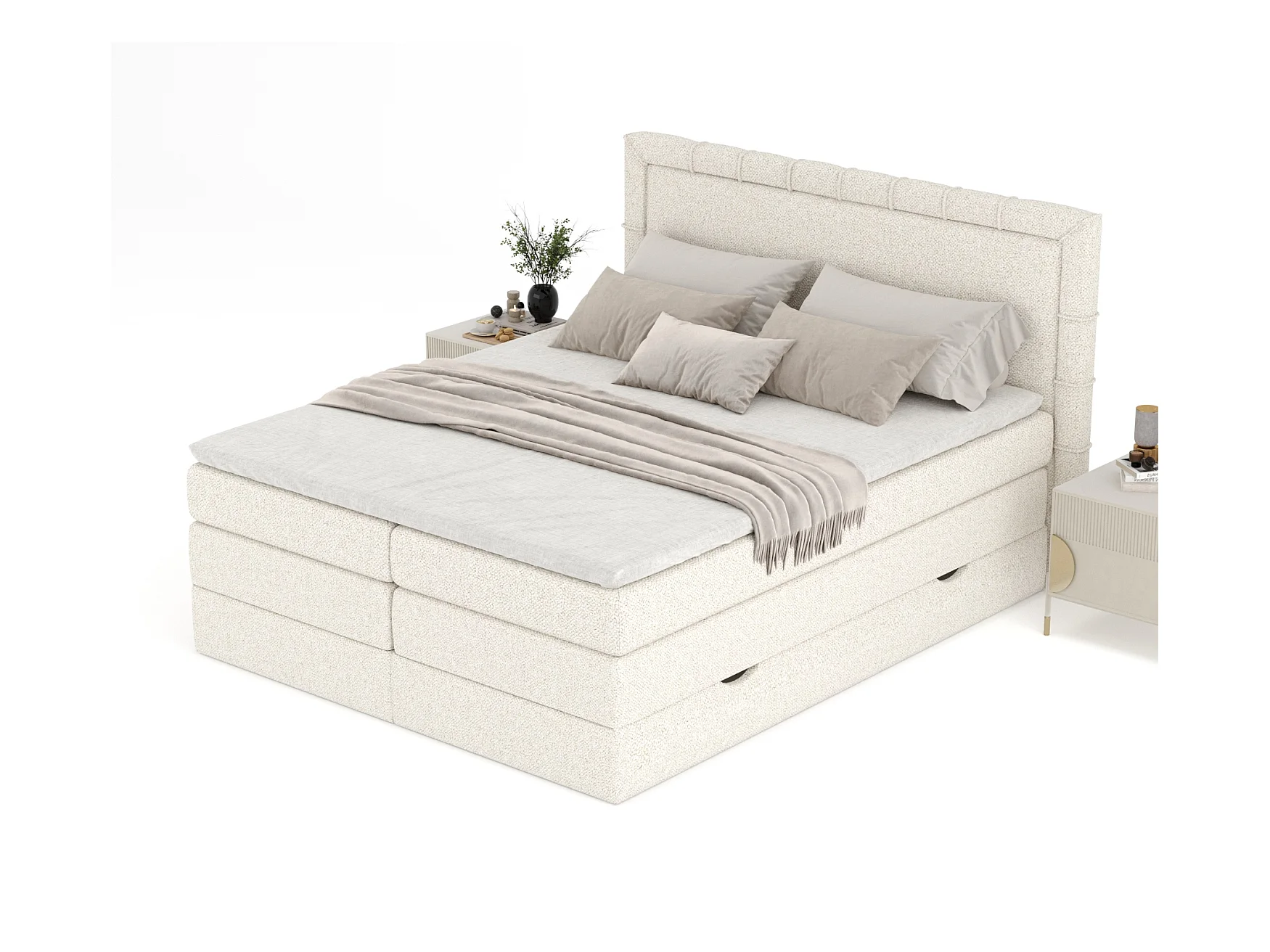 Lit boxspring en tissu bouclette Rosabel - matelas - surmatelas - 140x200 cm - creme