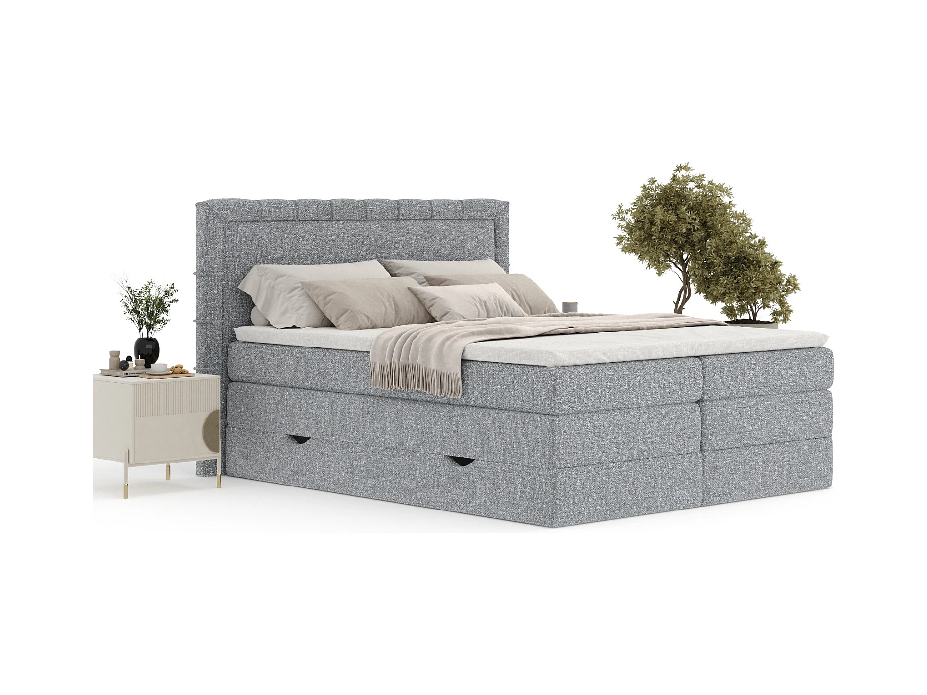 Lit boxspring en tissu bouclette Rosabel - matelas - surmatelas - 180x200 cm - gris