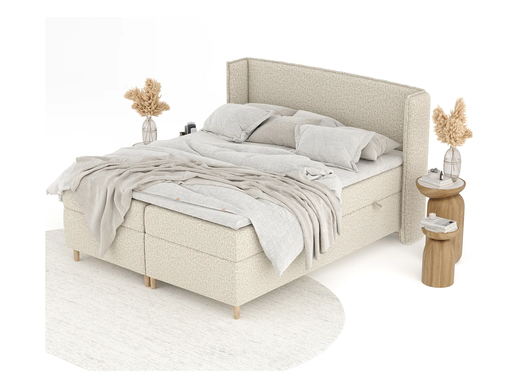 Lit boxspring en tissu bouclette Segni - matelas - surmatelas - 140x200 cm - beige