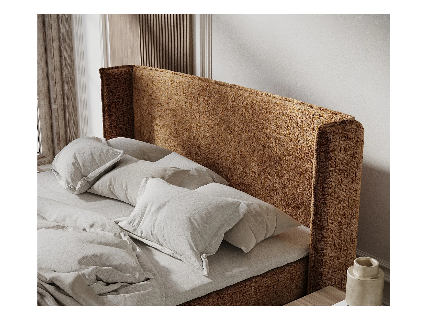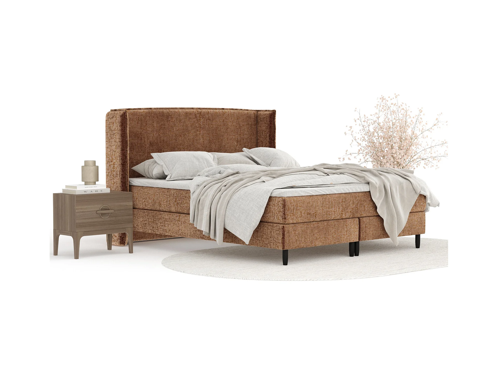 Lit boxspring en tissu chenille Ardis - matelas - surmatelas - 200x200 cm - couleur cuivre