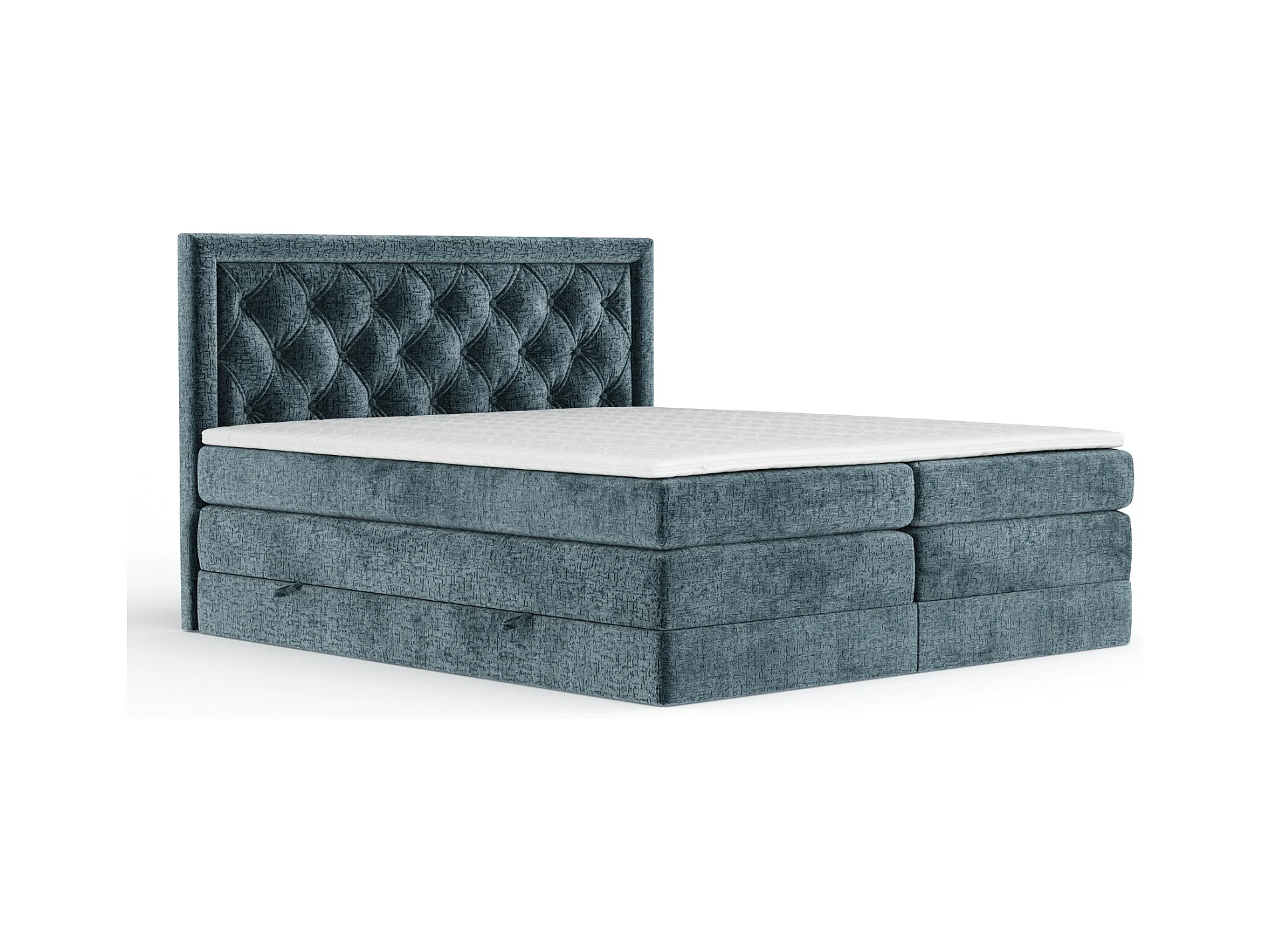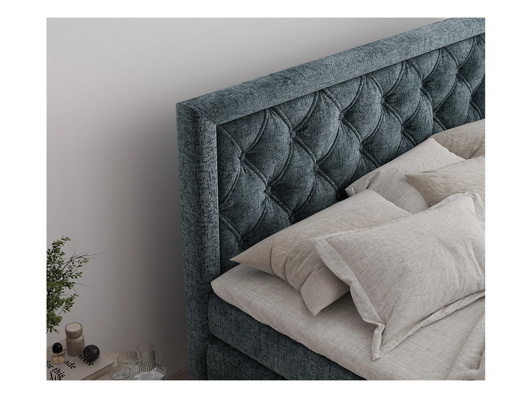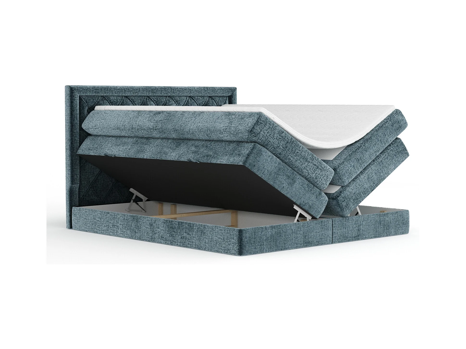 Lit boxspring en tissu chenille Aurelia - matelas - surmatelas - 200x200 cm - bleu