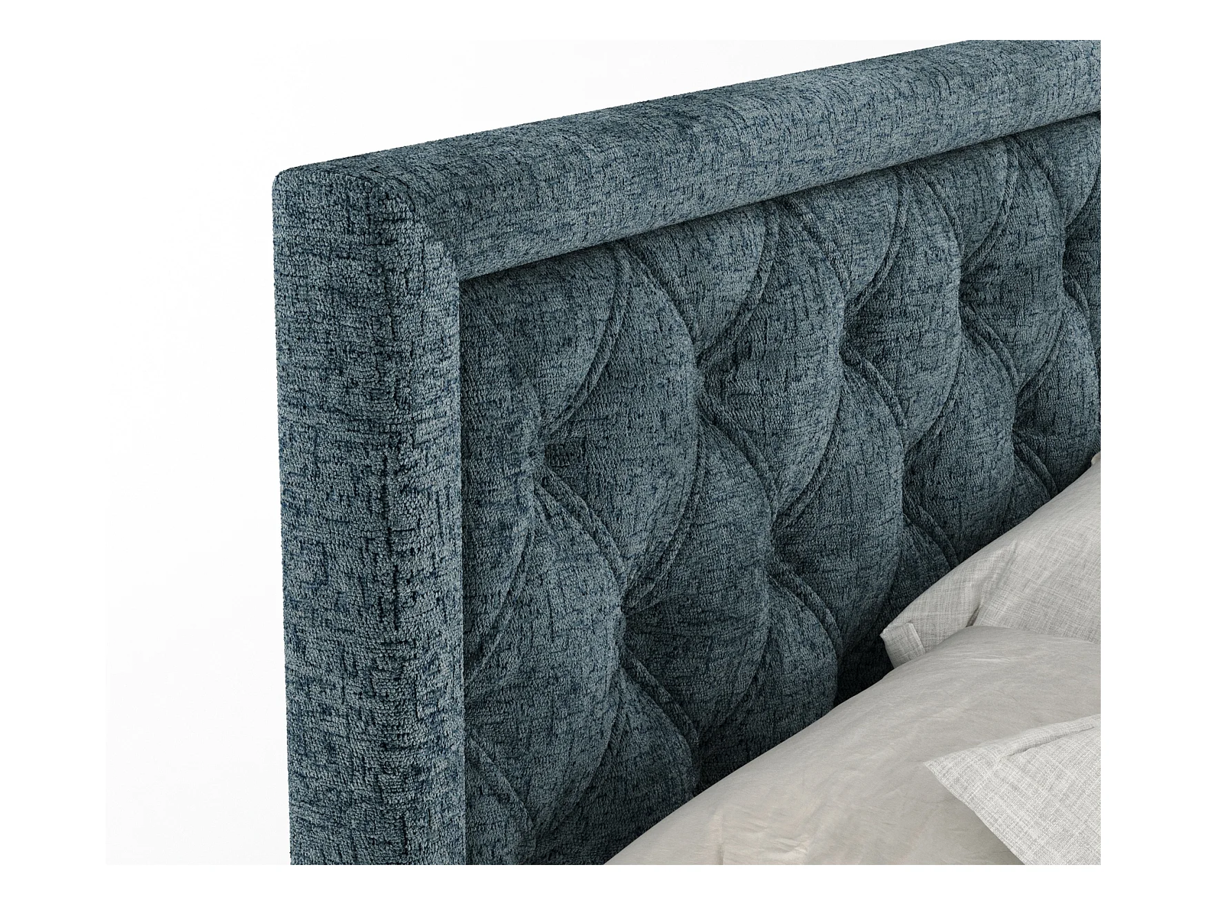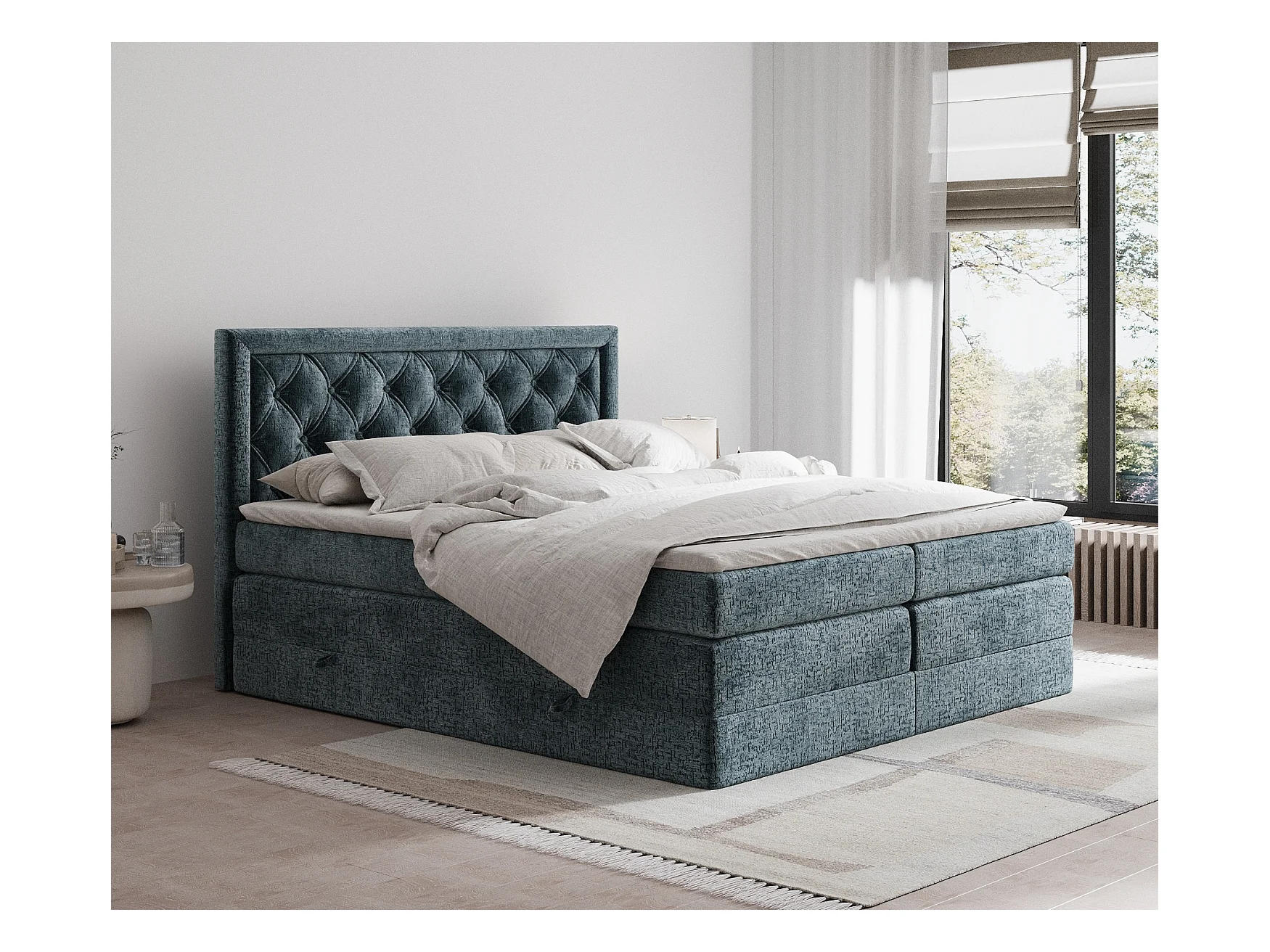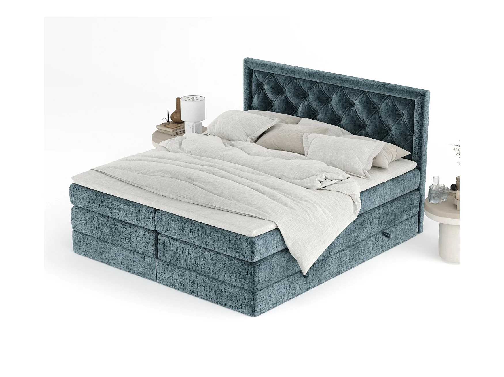 Lit boxspring en tissu chenille Aurelia - matelas - surmatelas - 200x200 cm - bleu