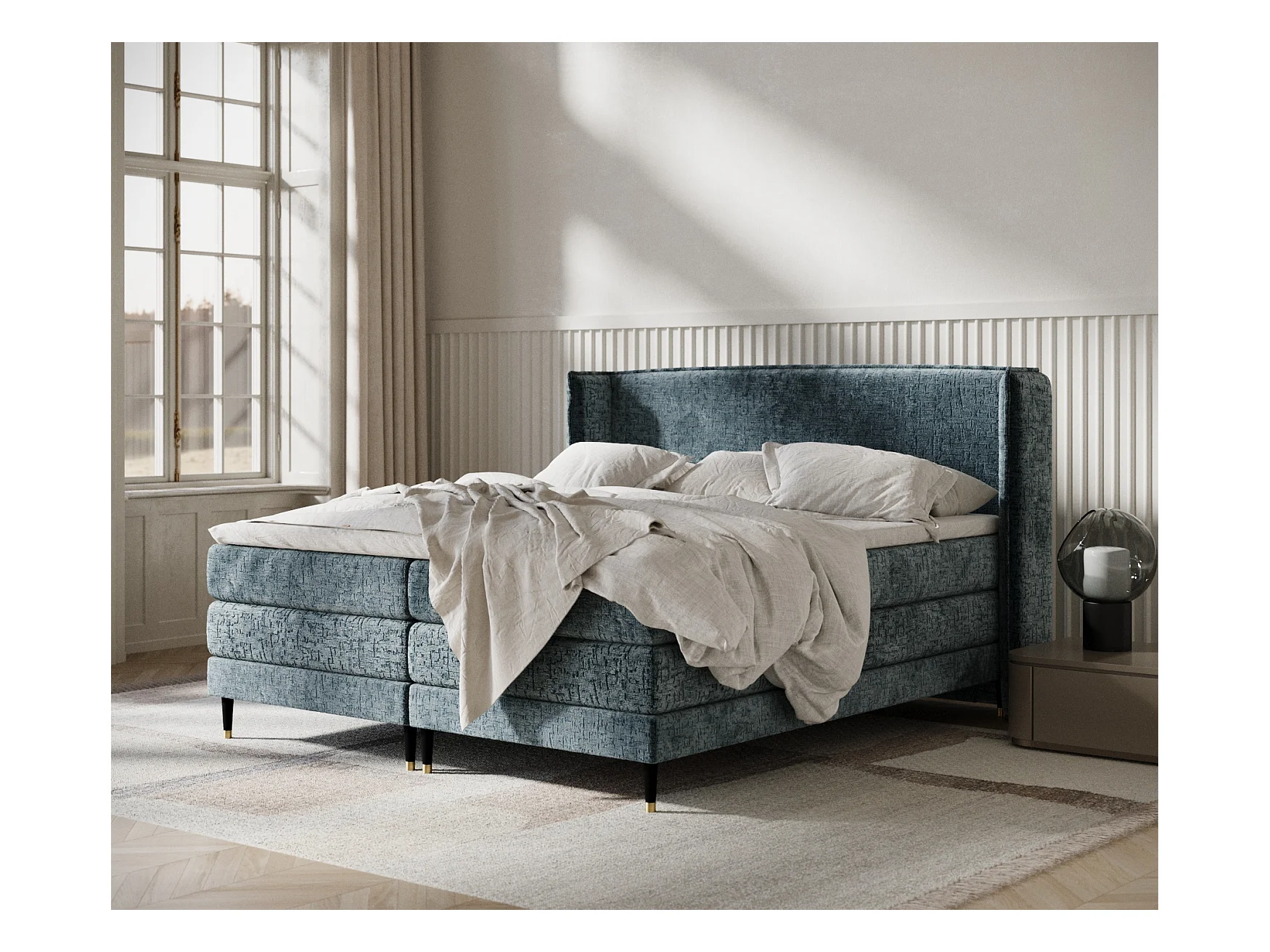 Lit boxspring en tissu chenille Carizzo - matelas - surmatelas - 140x200 cm - bleu