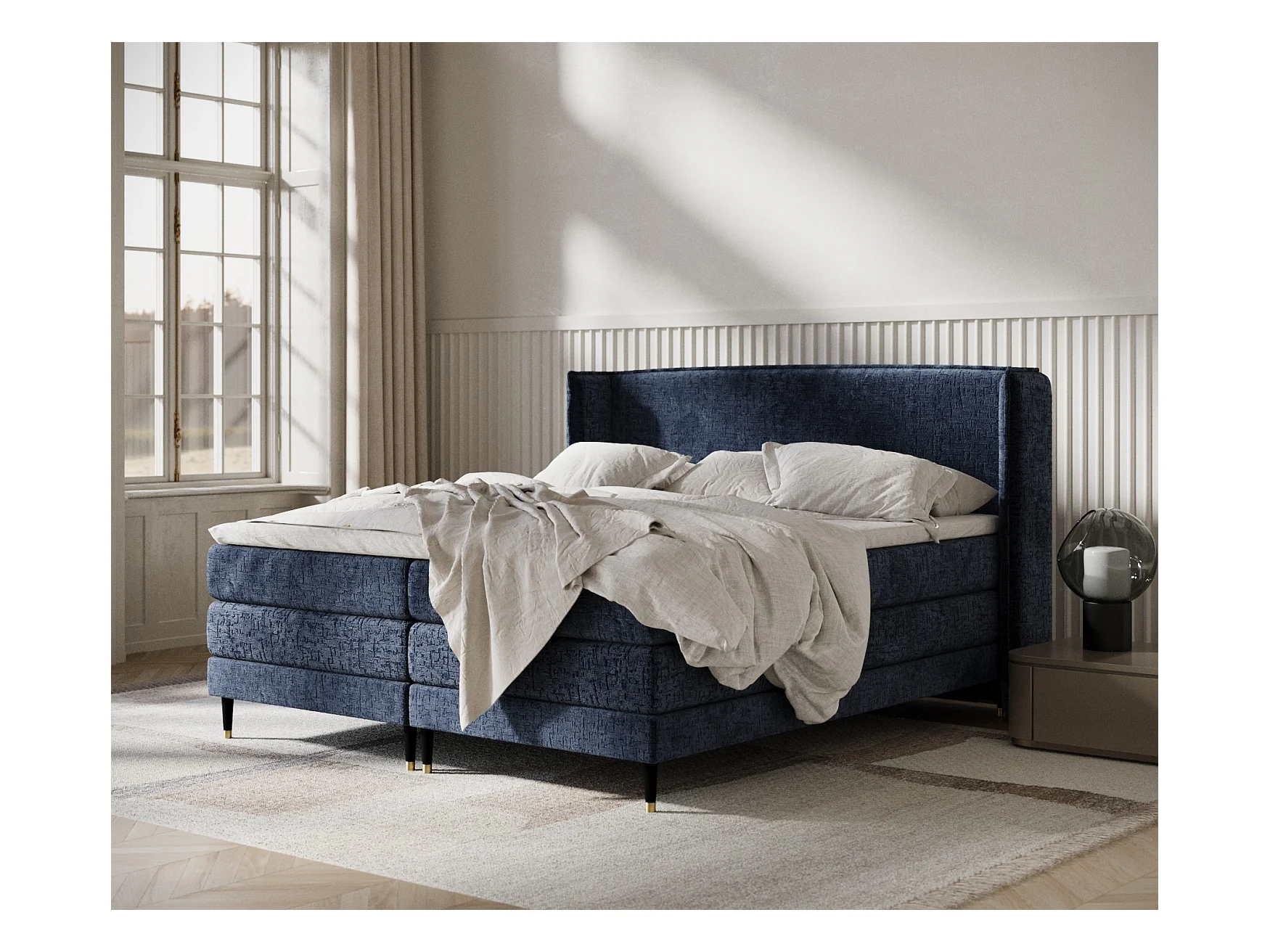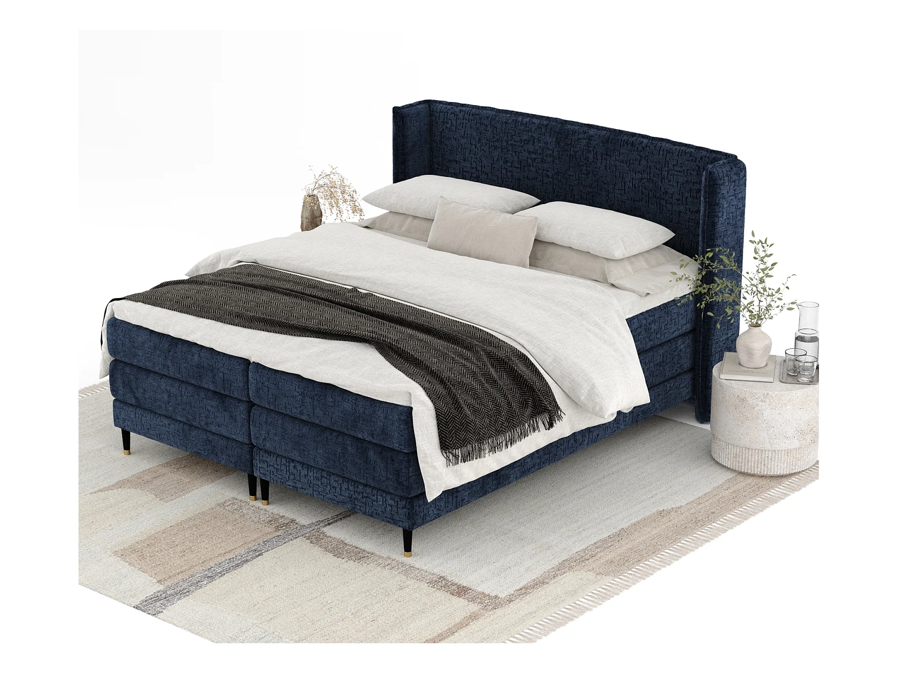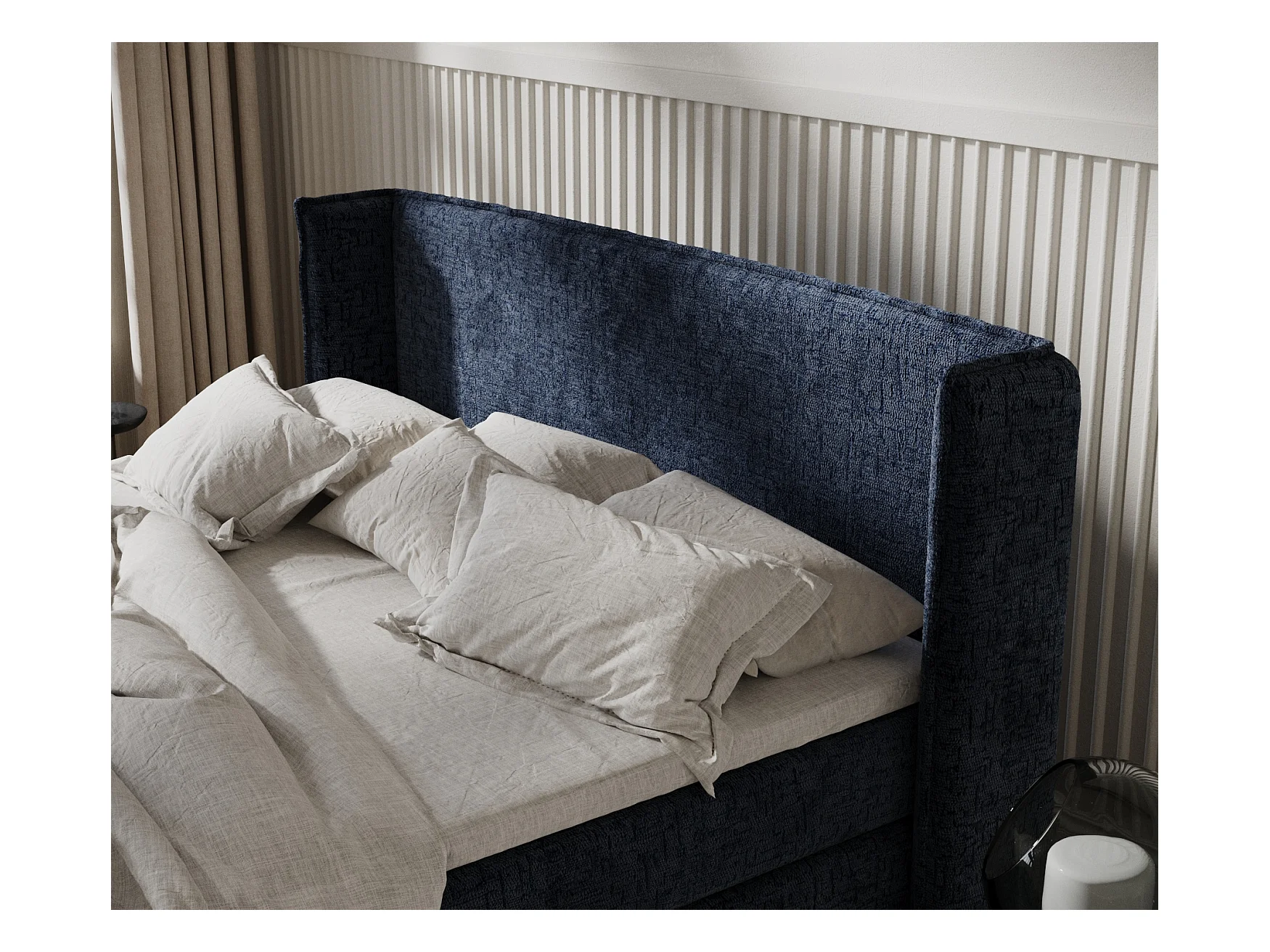 Lit boxspring en tissu chenille Carizzo - matelas - surmatelas - 140x200 cm - bleu marine