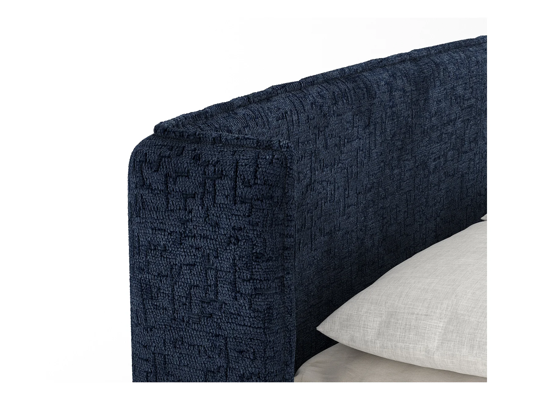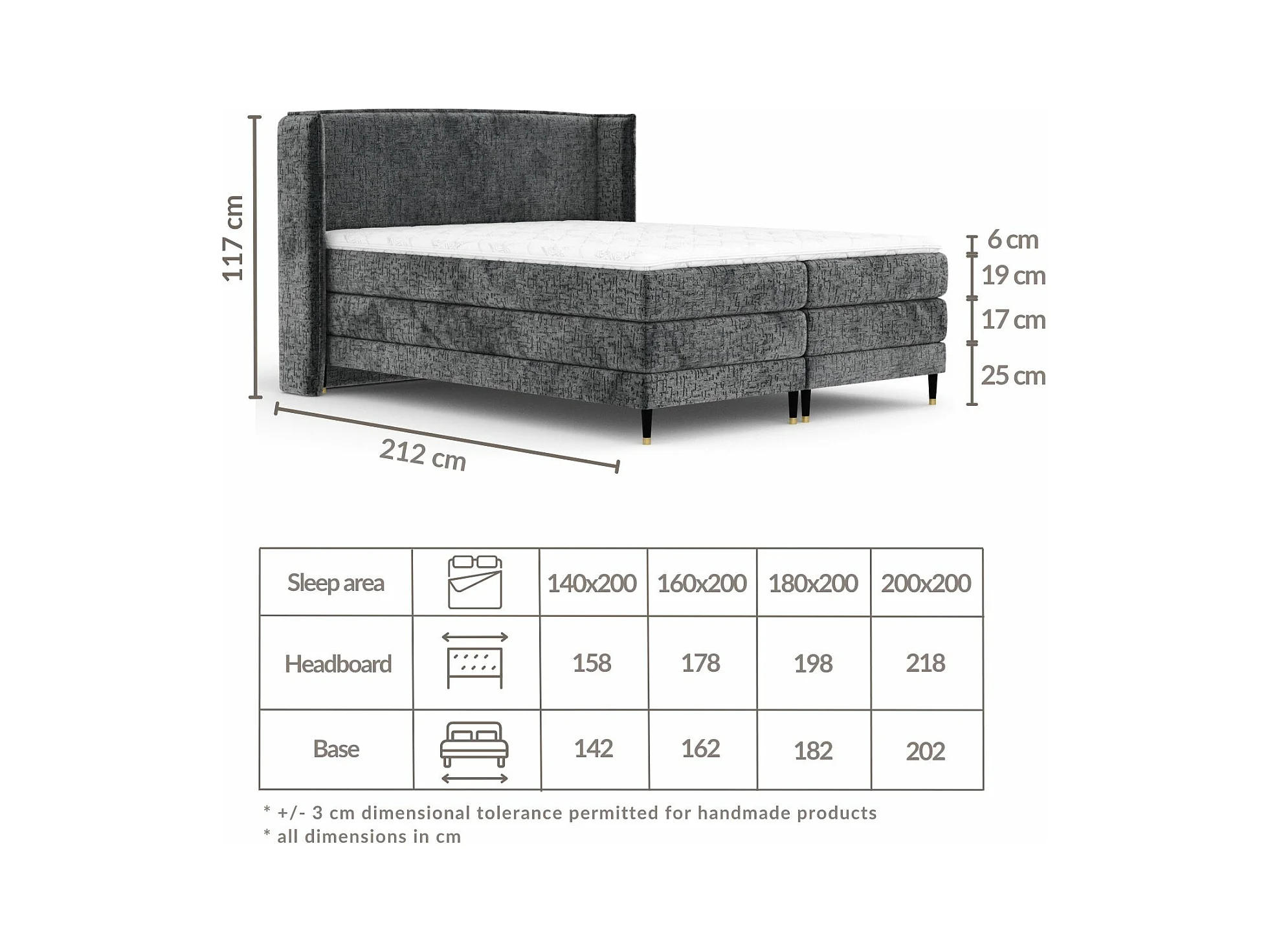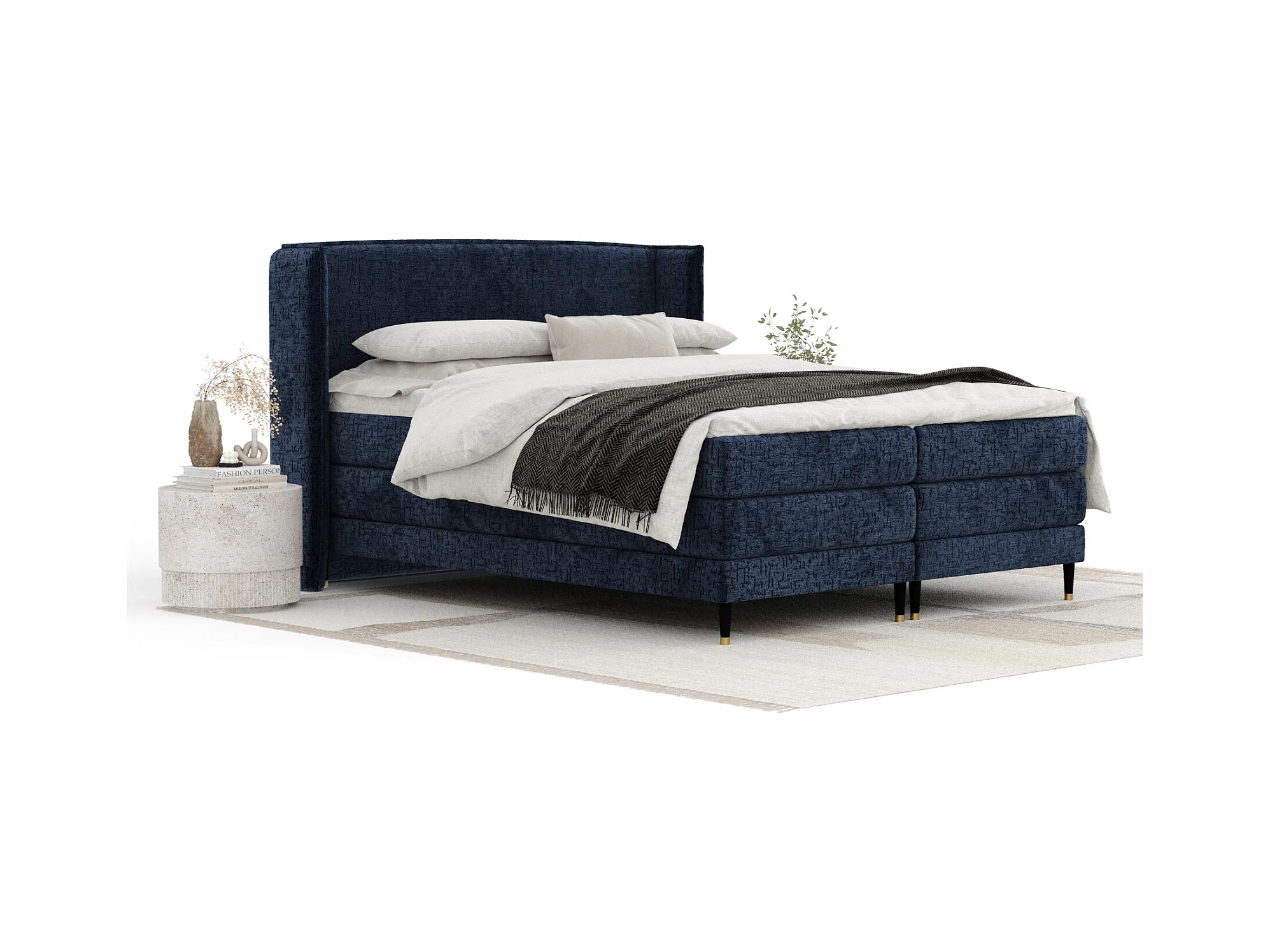 Lit boxspring en tissu chenille Carizzo - matelas - surmatelas - 140x200 cm - bleu marine