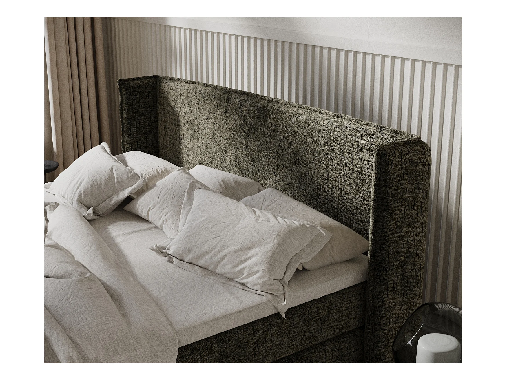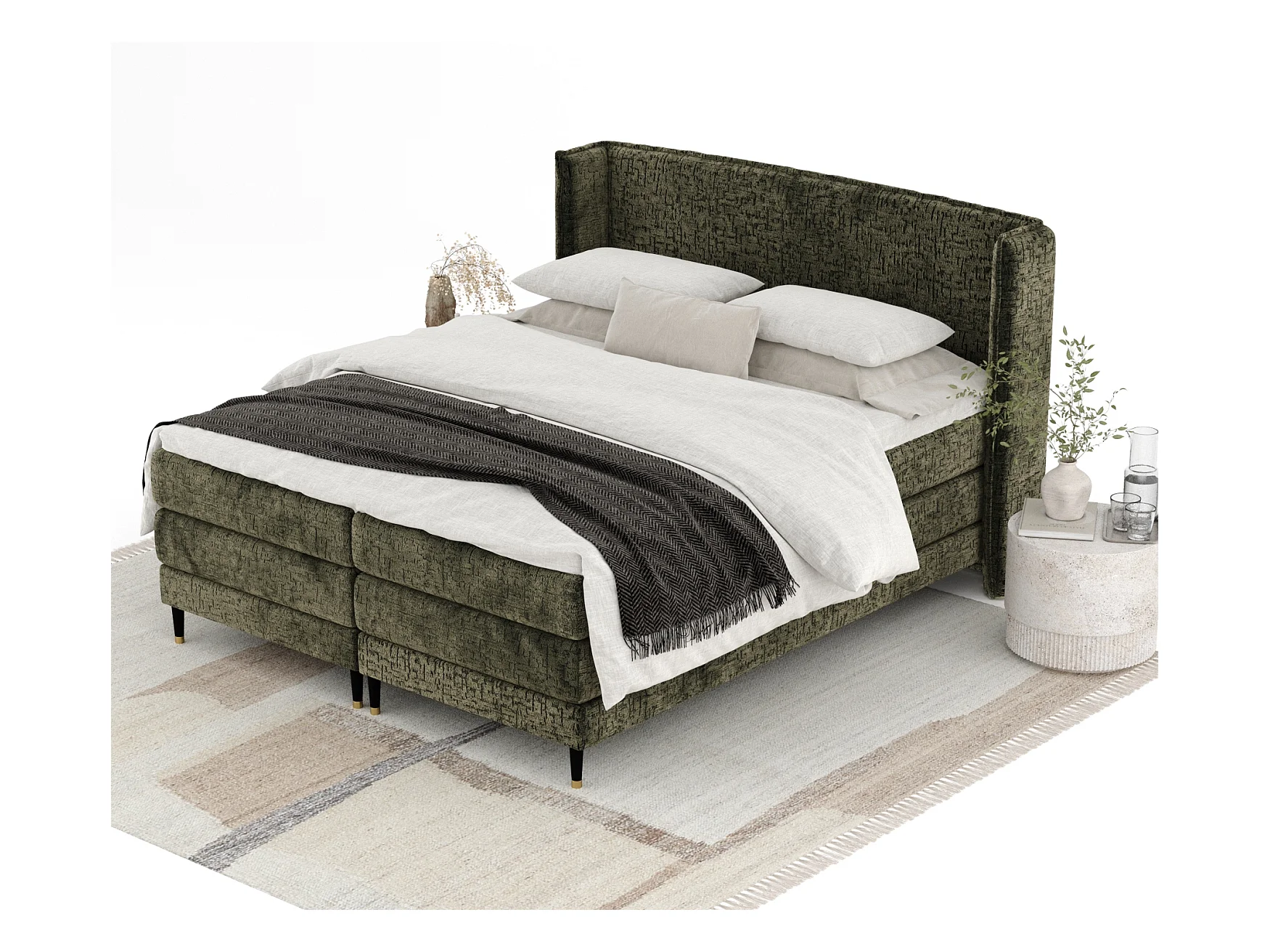 Lit boxspring en tissu chenille Carizzo - matelas - surmatelas - 140x200 cm - vert olive