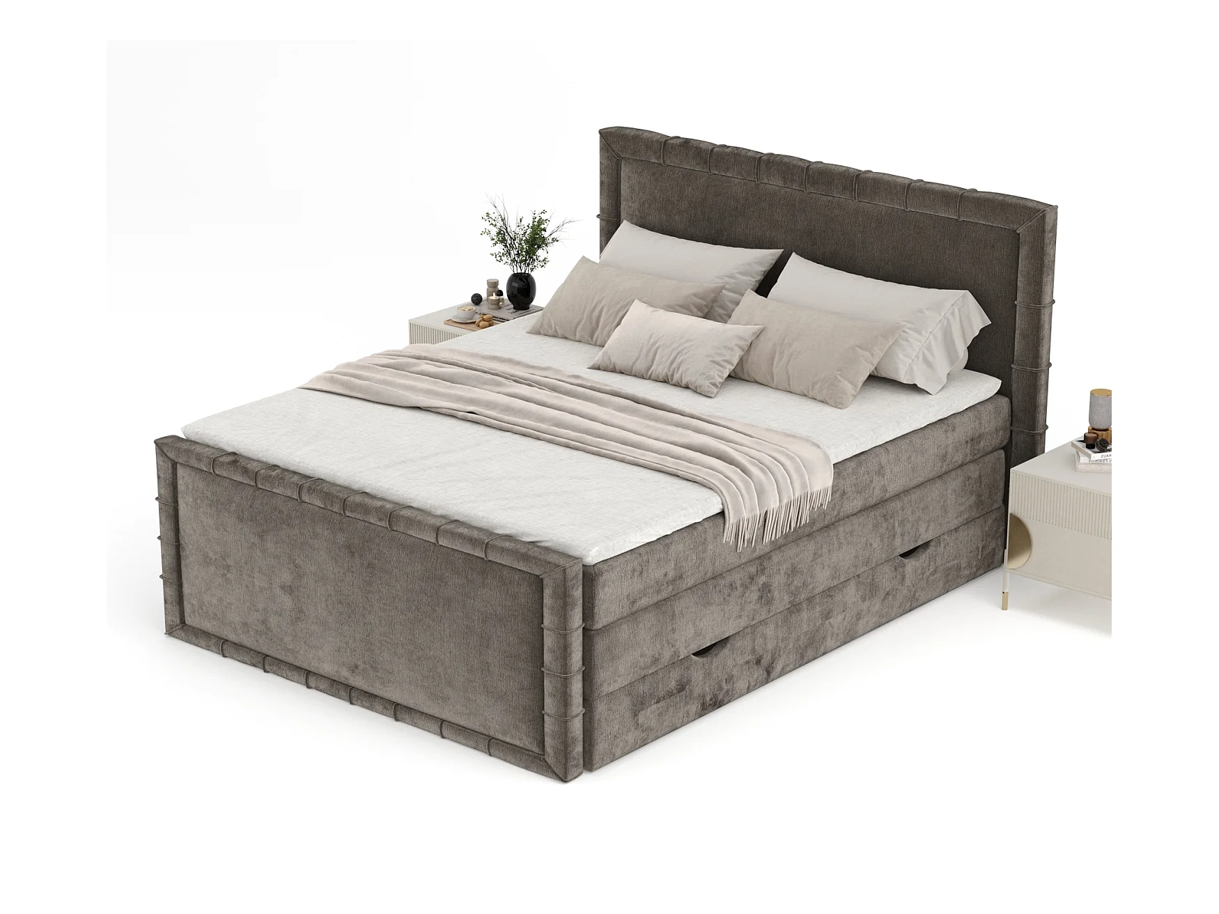 Lit boxspring en tissu chenille Estelle - matelas - surmatelas - 160x200 cm - brun